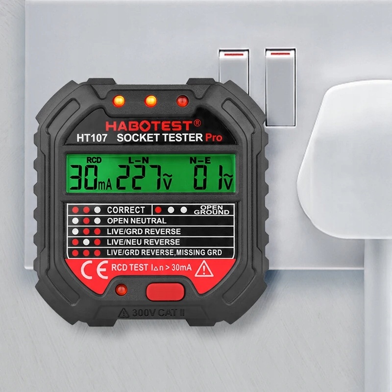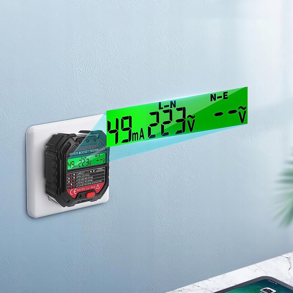 Тестер електричного розетки з великим РК -дисплеєм RCD Habotest