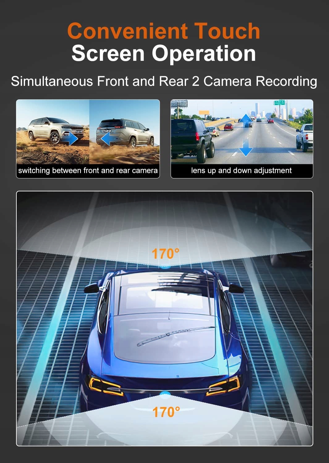 10-дюймовий повністю сенсорний IPS-екран забезпечить вам найприємніше візуальне враження, він також може бути оригінальним дзеркалом, коли екран вимикається. Широке поле огляду з передньою та задньою камерами на 170°. Реєстратор може допомогти зменшити сліпі зони та зробити водіння безпечнішим.