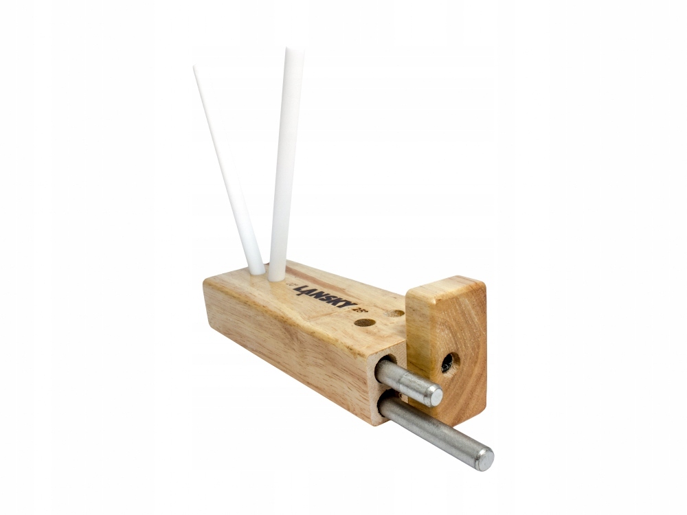 Створена з дерев'яної основи з отворами з різними кутами нахилу та набором із 4 точильних стрижнів, точилка Turn Box дає вам контроль над процесом заточування. Вибір кута заточування залежить від вас і буде відповідати вашим уподобанням, призначенню ножа або пропозиції виробника. Ви можете вибрати кут нахилу від 20° до 25°. Заточувальні стрижні з твердого алюмінію забезпечують ефективне заточування різних видів сталі. У набір входить 4 керамічні стрижні: