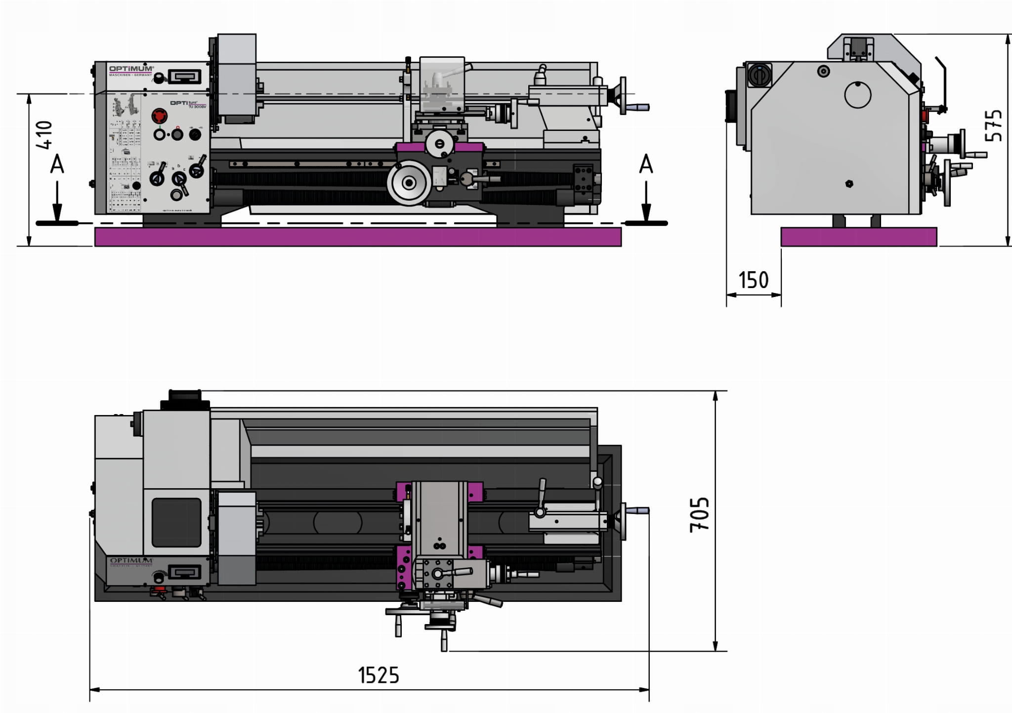 Токарний верстат з направляючим шпинделем і подачею OPTIMUM OPTIturn TU 3008+FREE