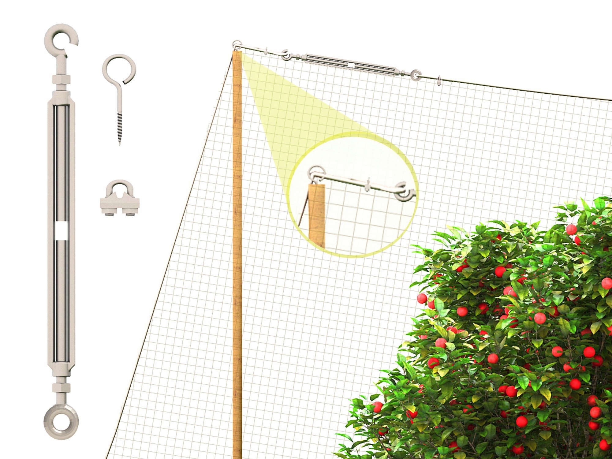 з урахуванням наркоманії, запропонованої нами (близько 10% довжини), значно полегшить монтаж сітки. Кілька додаткових лічильників сітки також дозволять його прикріпити до землі, що захистить захищені поверхні навіть проти найбільш наполегливих птахів.
