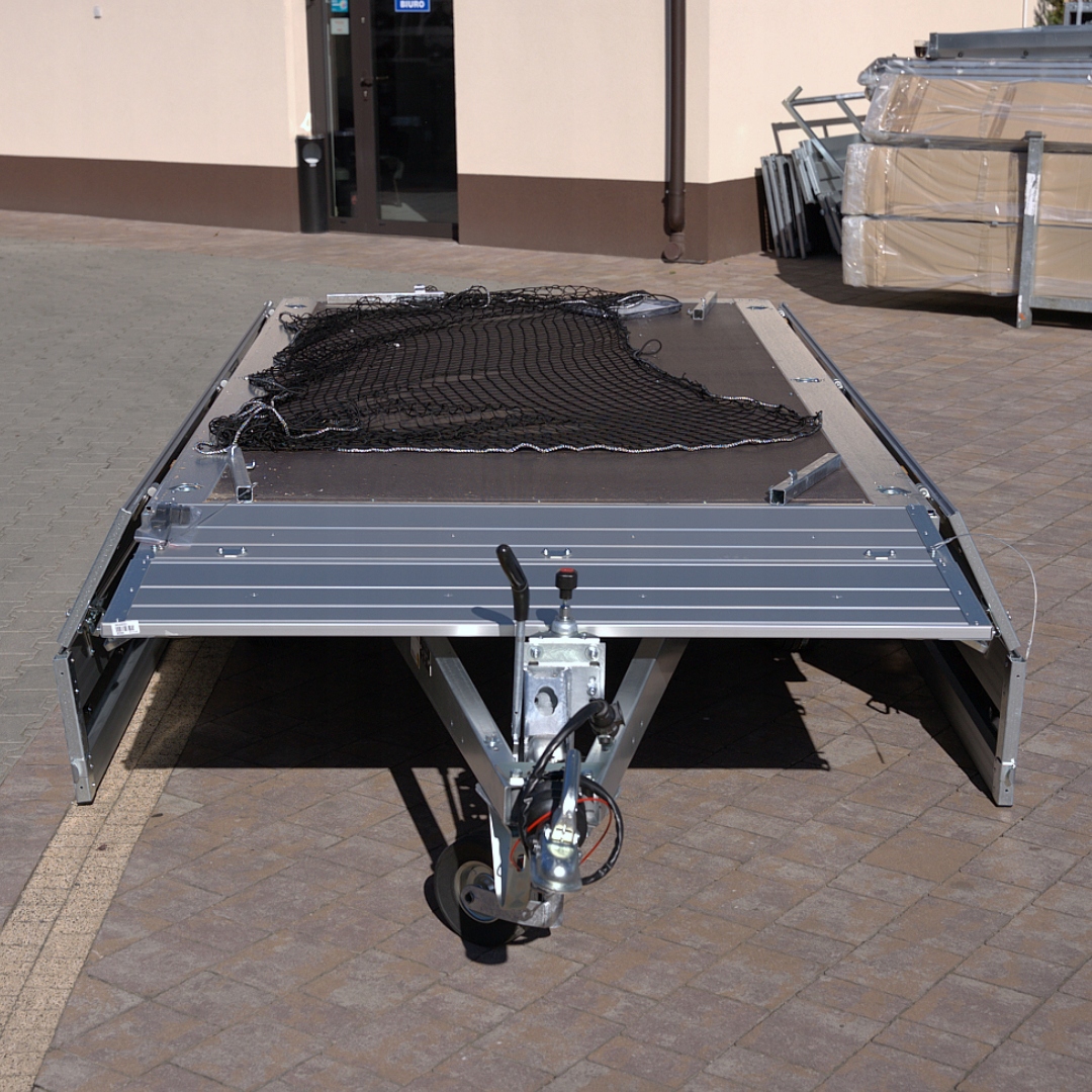 Трейлер доступний лише в нашому магазині. P> колеса, встановлені під підлогою, забезпечують оптимальне використання вантажного простору. Кріплення ручки на сталевому профілі дає можливість легкого закріплення навантаження. Широкий асортимент аксесуарів. Фотографії вони є ілюстративними фотографіями та можуть представити додаткове обладнання.