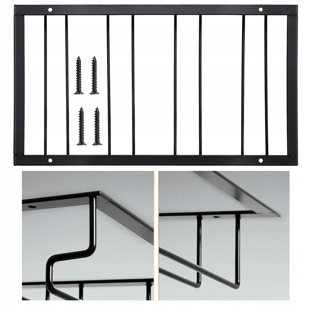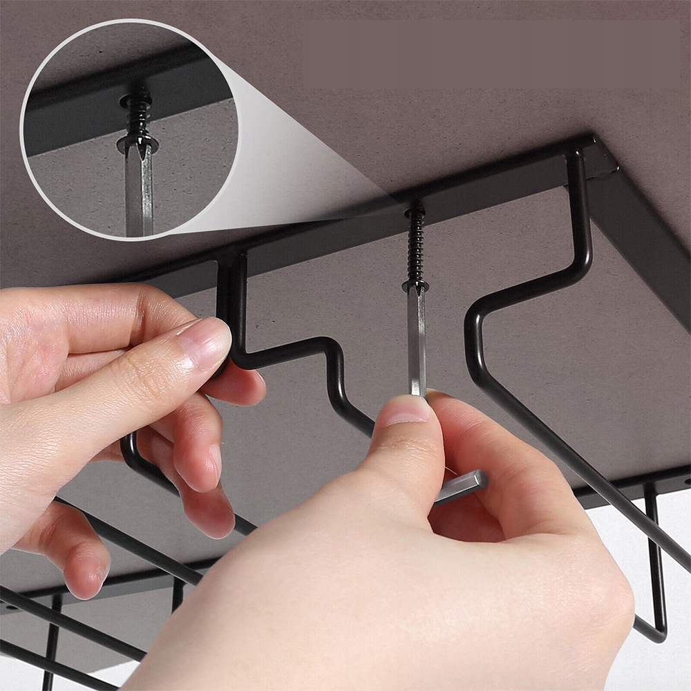 Встановлюючи цей тримач для винних келихів, просто за допомогою викрутки вкрутіть гвинти, що входять у комплект, у деревину шафи. Легке збирання за кілька хвилин без свердління отворів у шафі.