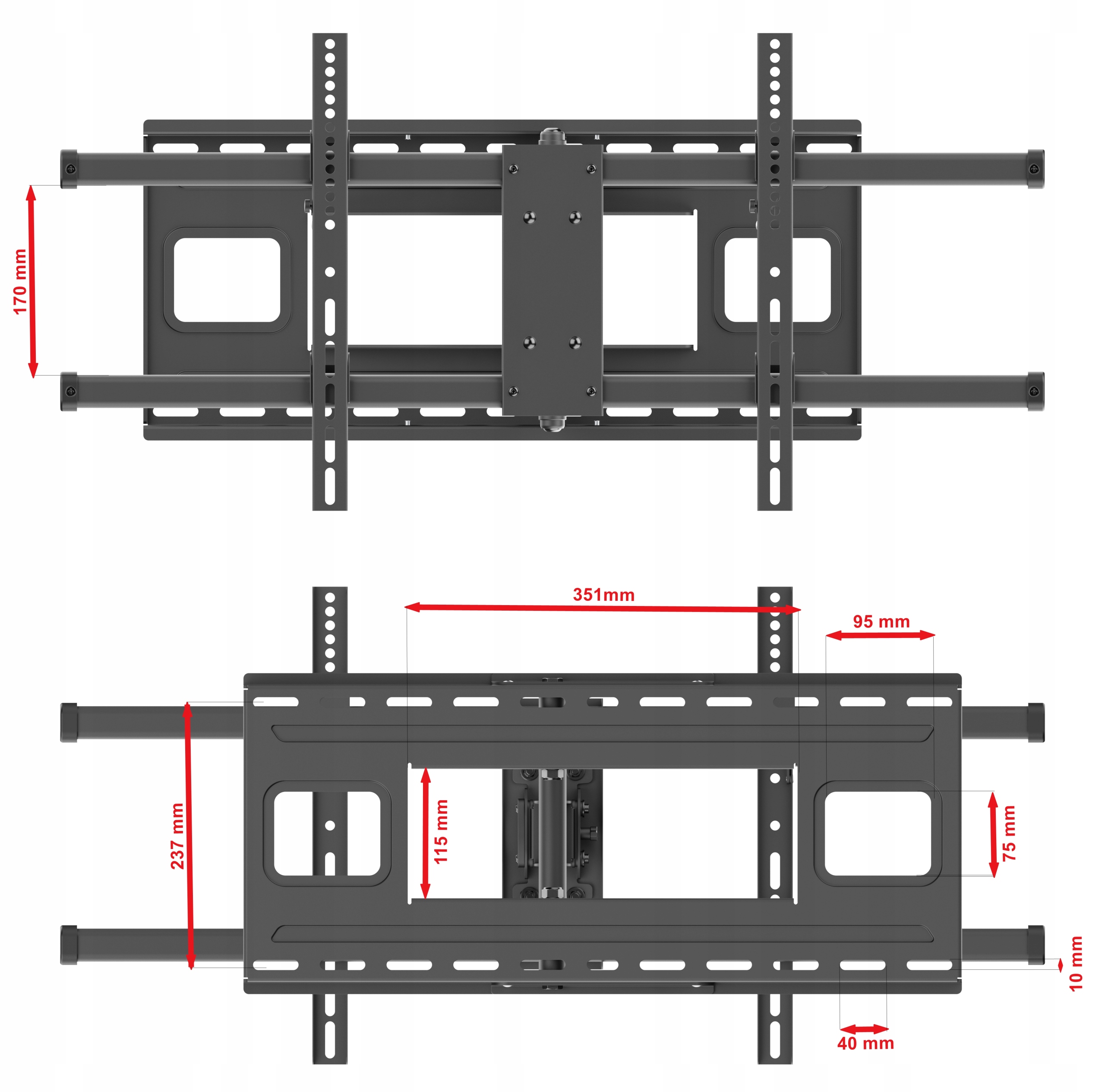 - ✅ Широкий настінна пластина, яка забезпечує рівномірний розподіл ваги телевізора на стініщо дозволить у разі потреби встановити кріплення навіть на 6 і більше шпильках