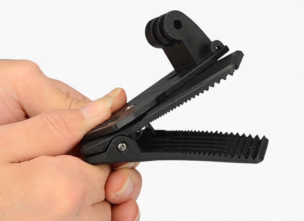 - Тримач дозволяє кріпити камеру на поясі рюкзака, штанів і на різних плоских поверхнях