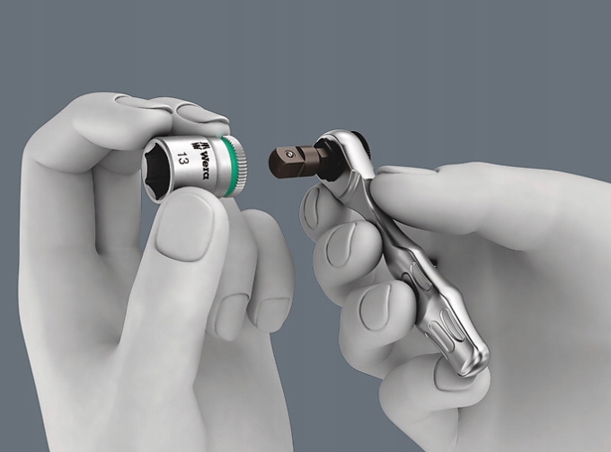 Викрутки та торцеві ключі. Ви також можете використовувати тримач наконечників для викрутки, який потім служить подовжувачем з обертовою втулкою. Для використання торцевих ключів потрібен перехідник 1⁄4" із шестигранним хвостовиком і квадратним приводом, наприклад, Wera 870/1 (доступний із набором Bit-Check і в наборах із храповим ключем).