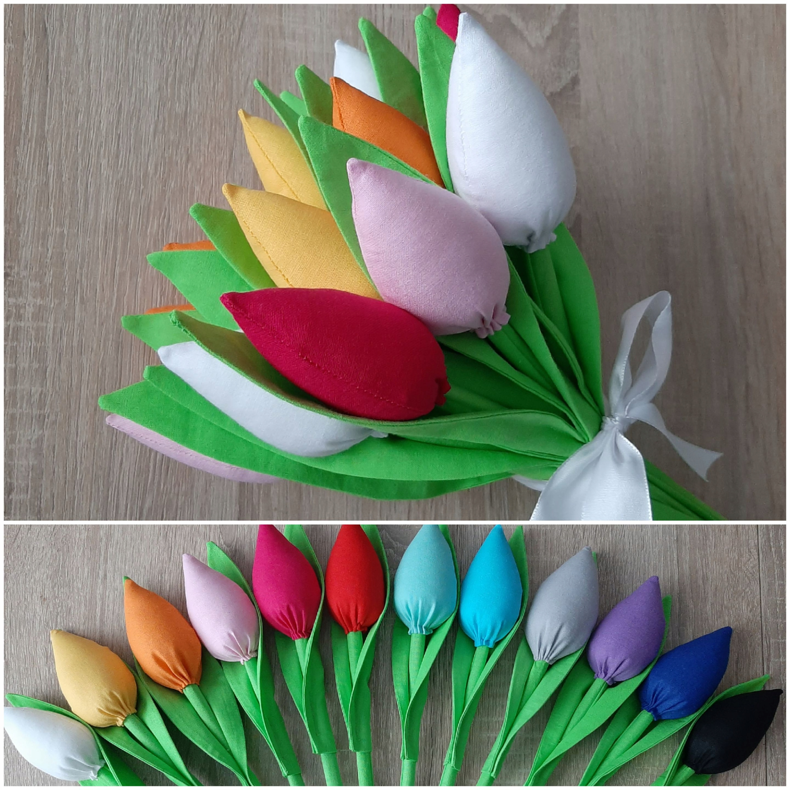 тюльпани, виготовлені з ручного матеріалу в різних кольорах