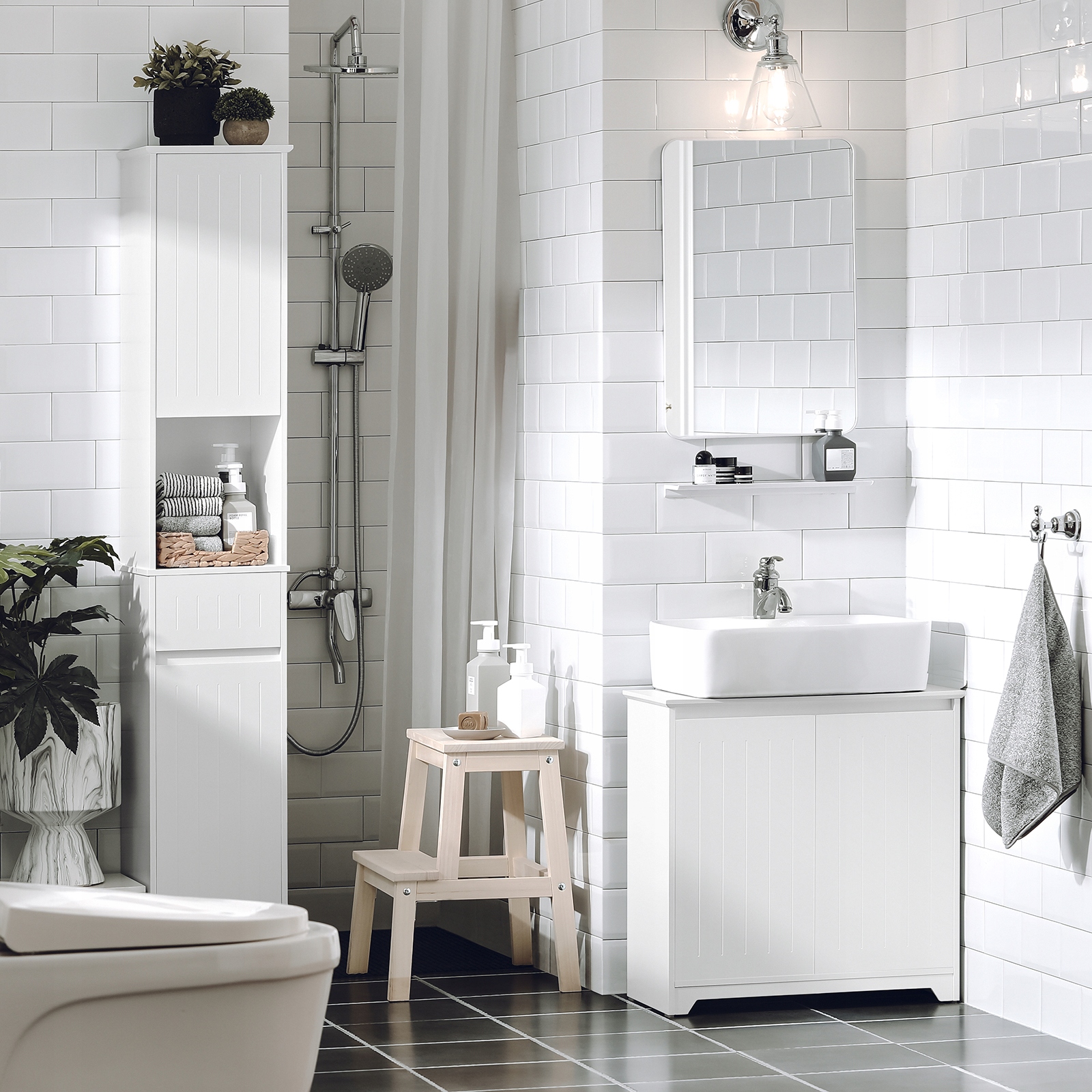 Також можна придбати як набір із 4 предметів: висока шафа (BZR109-W), тримач для туалетного паперу (BZR111-W), тумба під умивальник (BZR108-W) і тумба для білизни (BZR110-W).