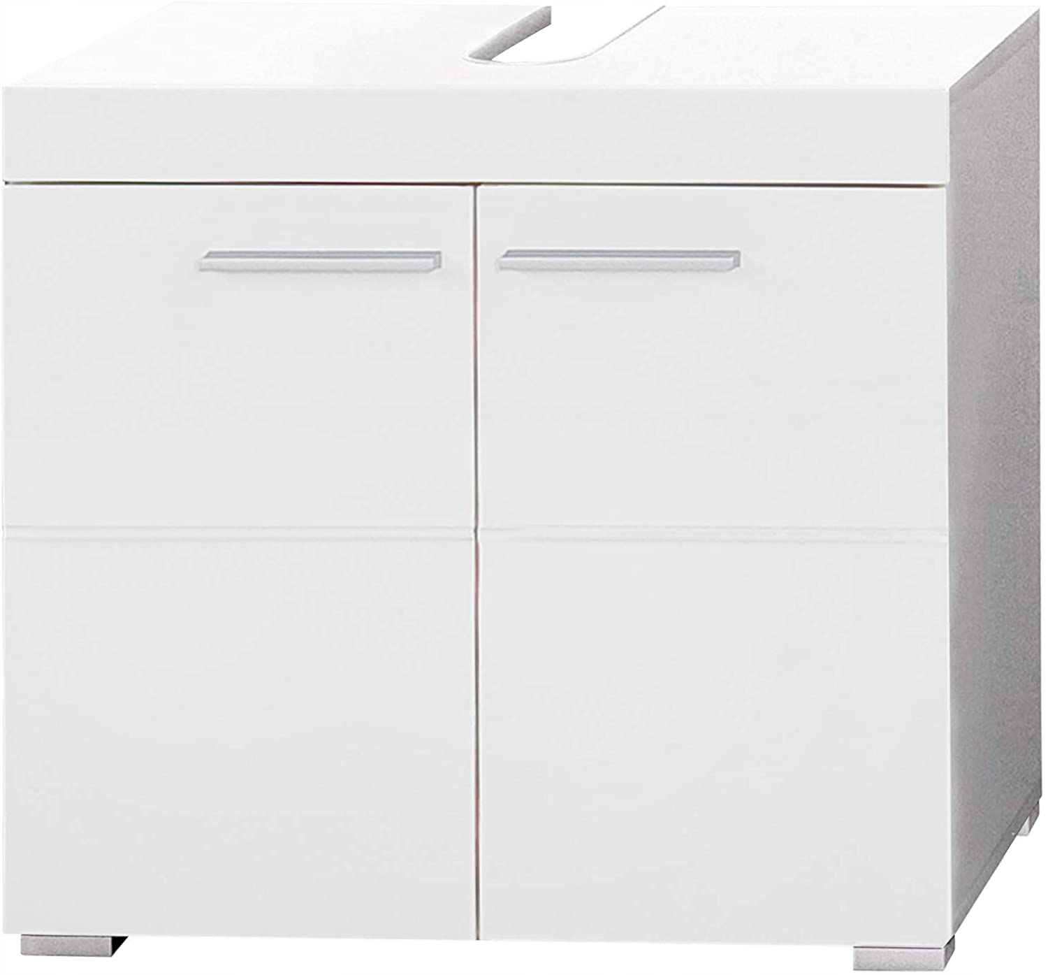 - Сучасна тумба під умивальник, проста в догляді, з двома дверцятами та однією полицею, що вставляється, у білому куполоподібному кольорі/білому глянцевому фасаді