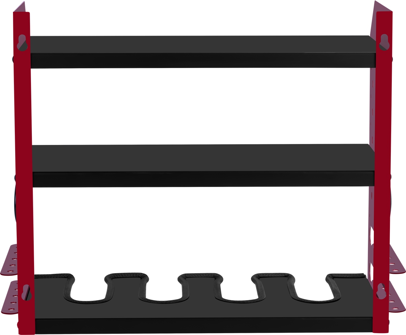 ➡ Нижня полиця з вирізами служить організатором буріння, забезпечує легкий доступ до електроінструментів, економить місце та забезпечує зручне місце для повісання дриля під час використання.