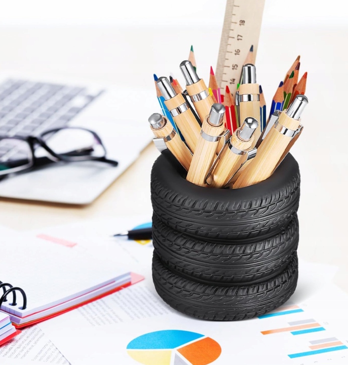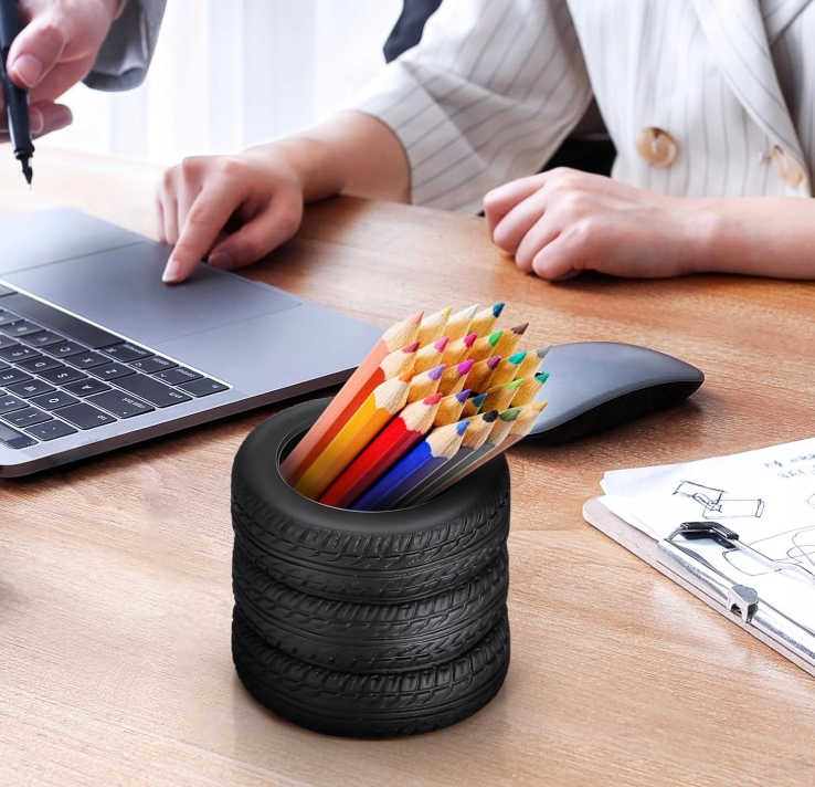 · Якщо ви хочете додати трохи творчості та веселощів до свого столу, і в той же час вам потрібно практичне рішення для зберігання канцелярських товарів, ця творча ручка шин буде вашим ідеальним вибором.