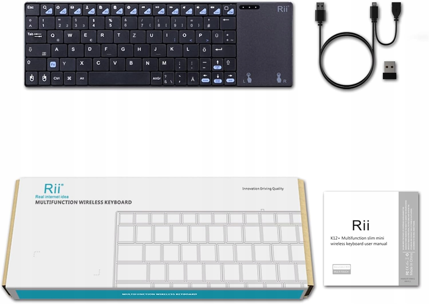 Сучасна, компактна та легка клавіатура RII була розроблена для зручного використання в офісі, будинку та на подорожі. Завдяки побудованому сенсорному та бездротовому підключенню, 2,4 ГГц забезпечує комфортну роботу пристроїв, оснащених USB -портом. GHZ