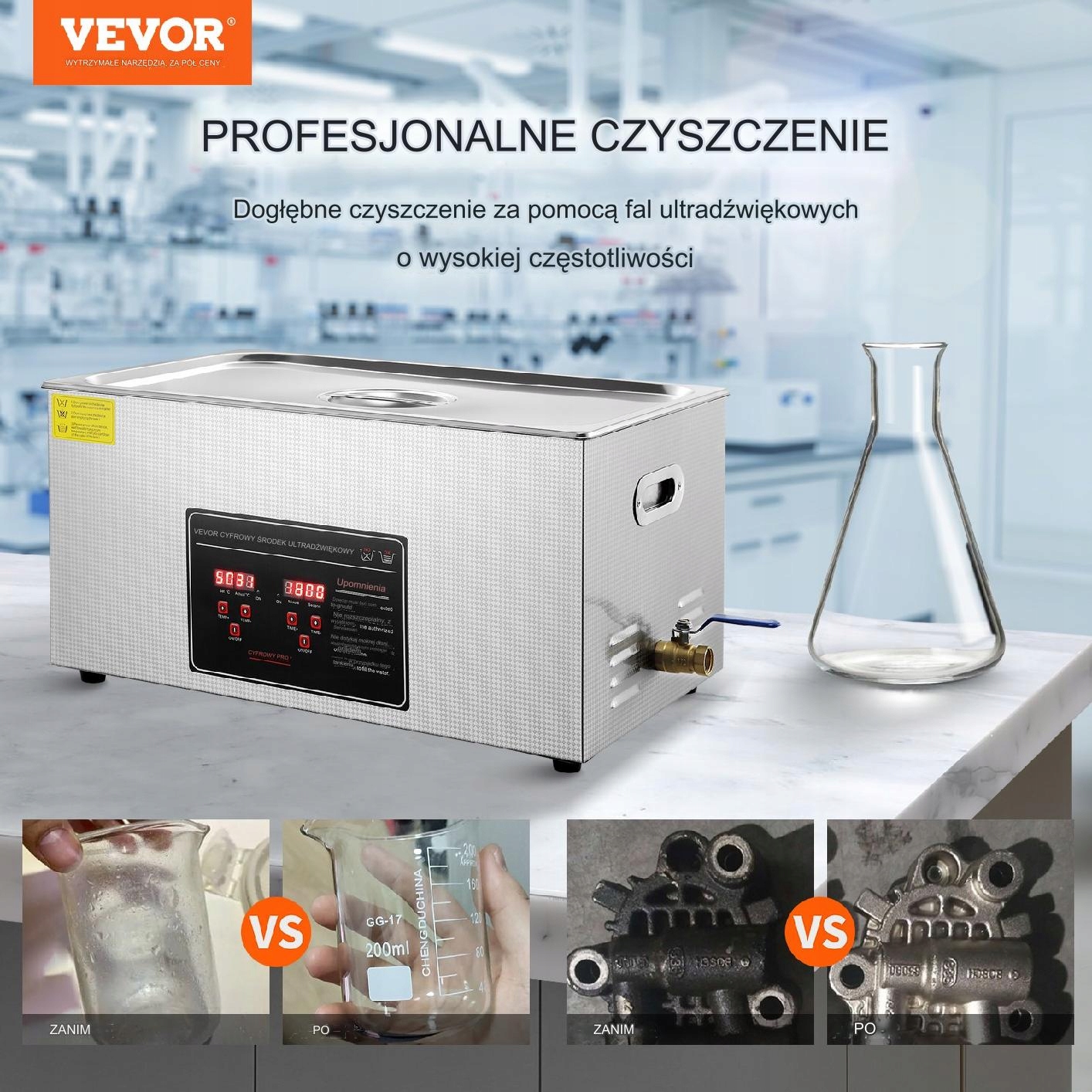 Ультразвуковий очисник оснащений сучасними перетворювачами, які значно підвищують його ефективність. Створена для точного чищення, пральна машина ефективно видаляє забруднення навіть із важкодоступних місць, що робить її ідеальним рішенням як для щоденного, так і для професійного використання.