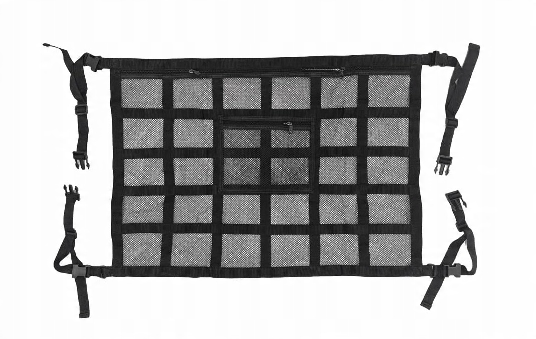 - містка сітчастої кишені для стелі автомобіля: Сітка дозволяє зручне зберігання легких предметів, таких як одяг, подушки, ковдри, іграшки та паперові рушники. Завдяки цьому ви можете ефективно розвинути простір у машині, усуваючи безлад. 4 Завдяки гнучким властивостям він адаптується до зберігаються предметів. 4 Міцна конструкція запобігає навантаженню навантаження під час руху. 4 Він не блокує видимість у дзеркалі заднього виду, завдяки якому він не впливає на безпеку водіння.