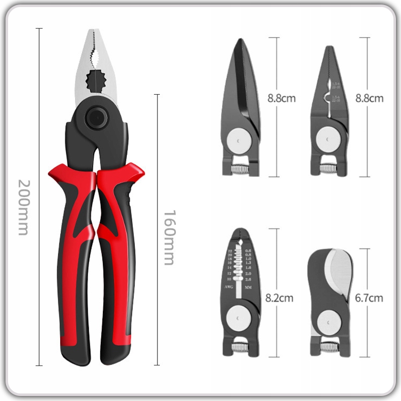 ⭐ Багатофункціональні плоскогубці можна швидко адаптувати до багатьох робіт. Заміна голови дуже проста.