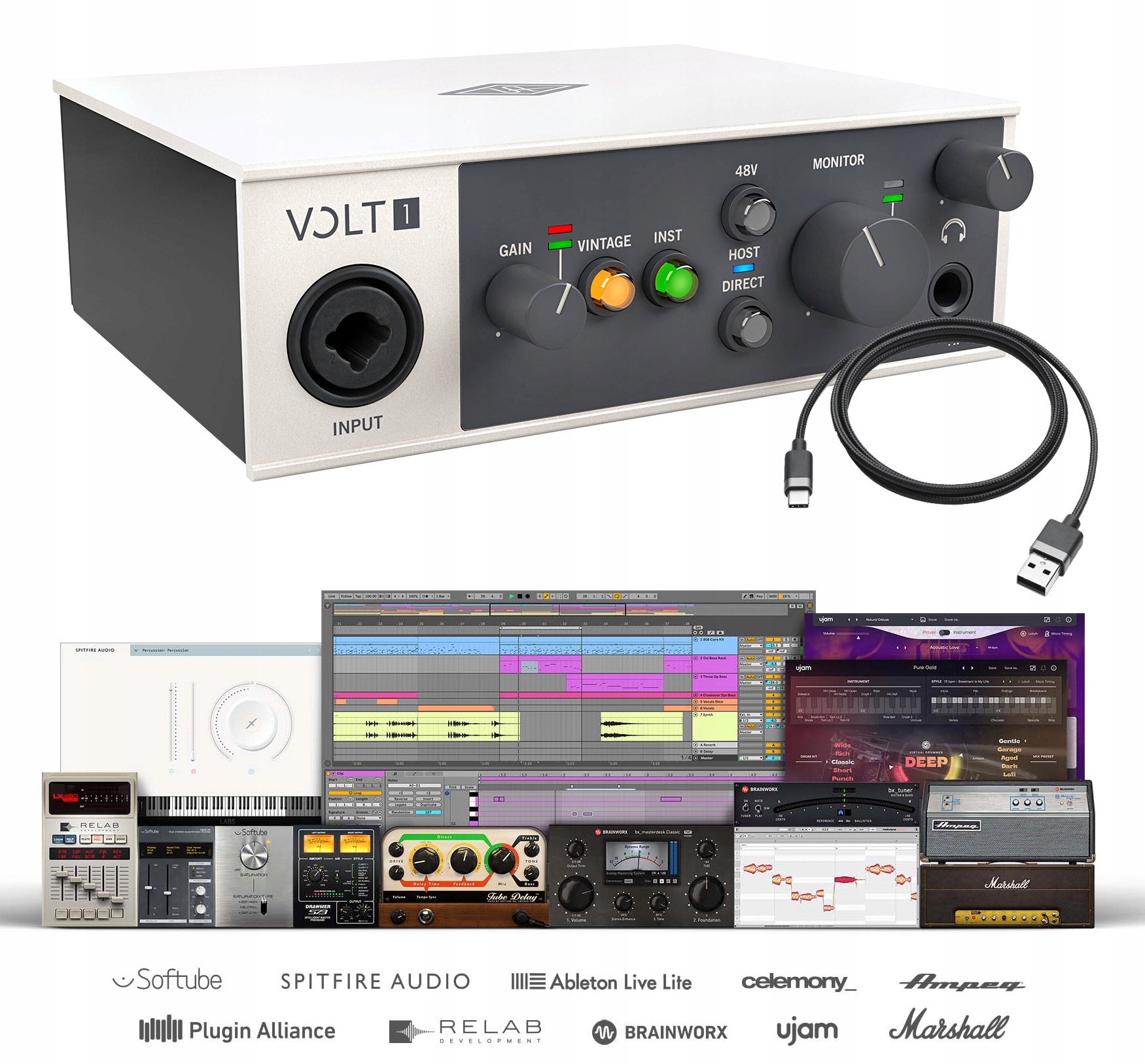 Деякі аудіоінтерфейси надають випадкові аудіопрограми. Але не Вольт. Натомість UA створила набір серйозних музичних інструментів, віртуальних інструментів і плагінів, зокрема Ableton, Melodyne, UJAM Virtual Drummer, Marshall, Ampeg та багато іншого.
