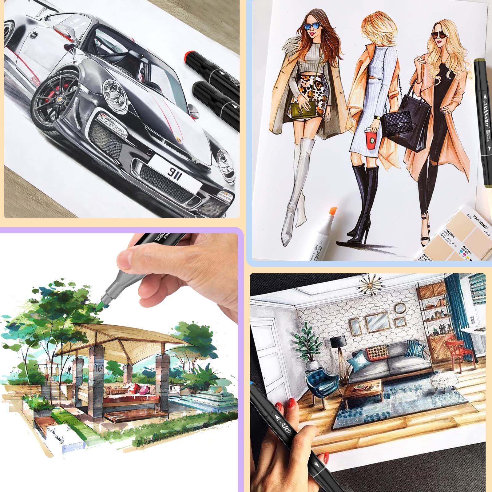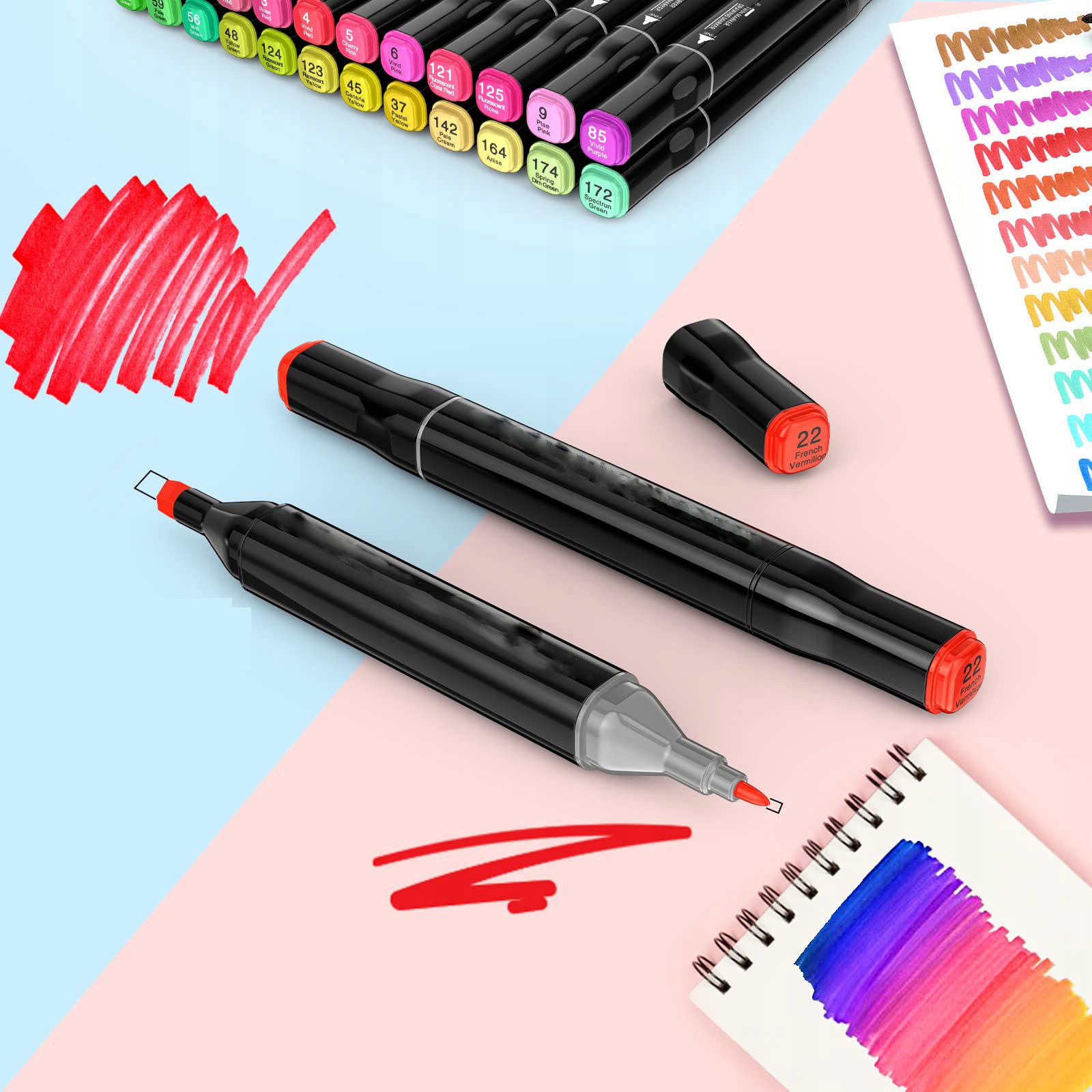 🌈🌈🌈 Швидко висихає та легко носити: швидковисихаючі чорнила забезпечують насичений і яскравий колір полегшує нанесення шарів і змішування різних кольорів. Крім того, він не забруднить одяг, шкіру та руки. Завдяки красивій сумці набір маркерів легко носити та зберігати.