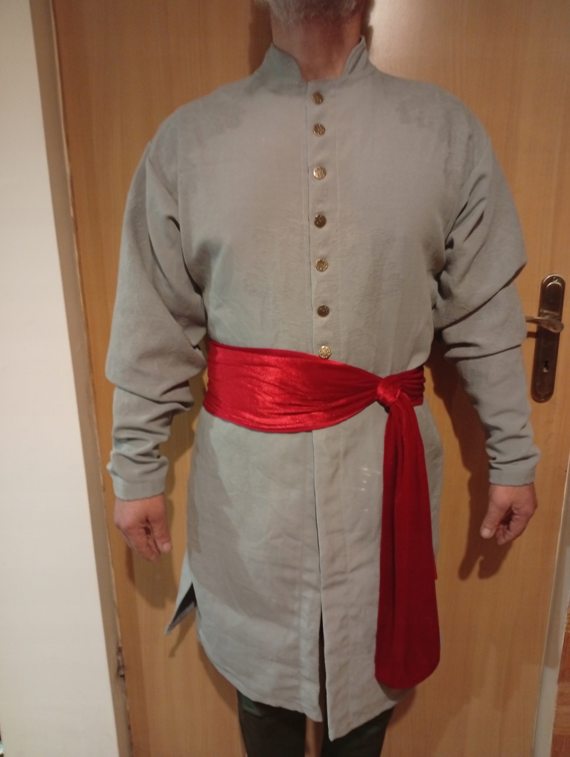 Żupan popielaty z tłoczonym metalowe wzorem guziki + pas gratis !!!