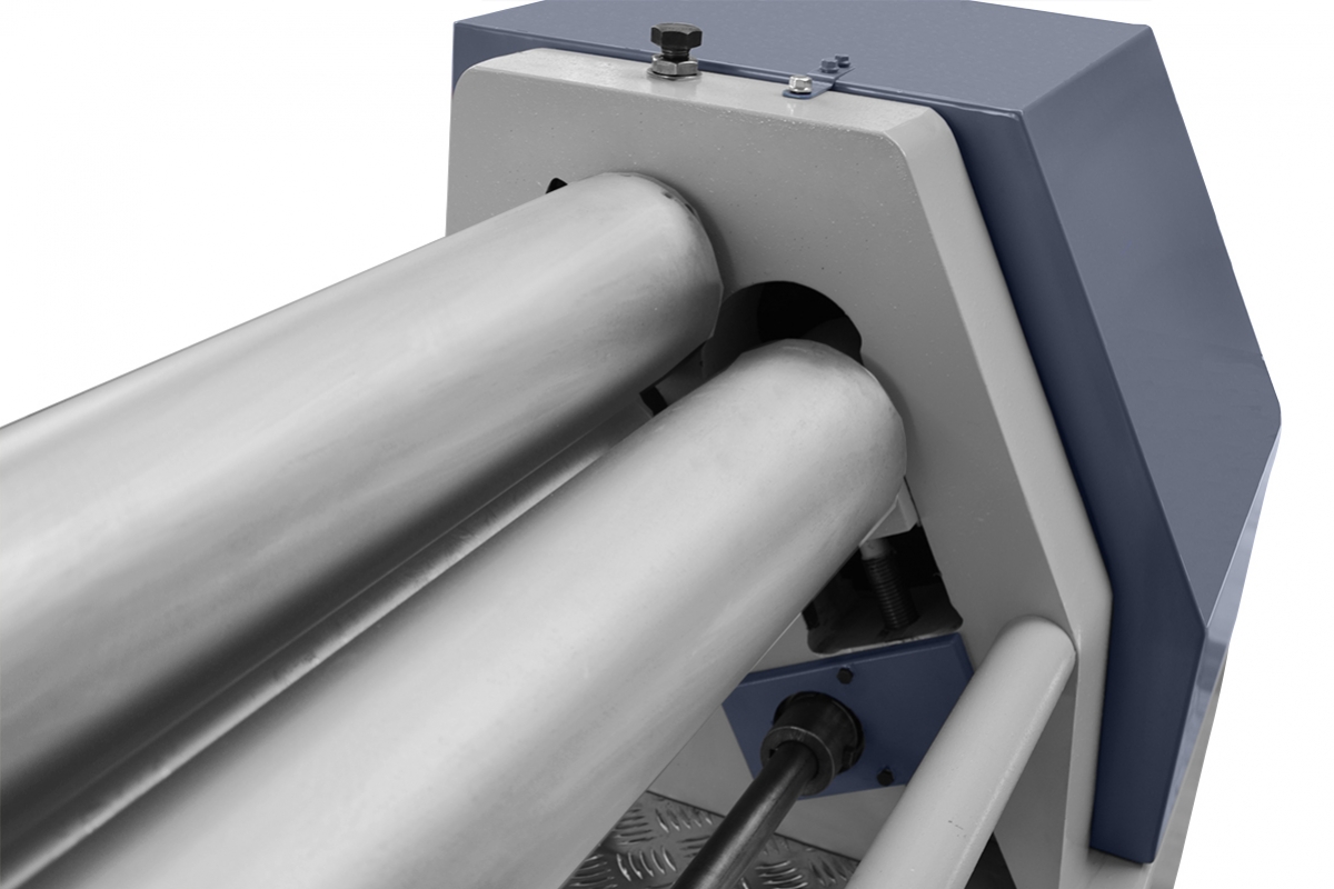 - Асиметрична конструкція роликової системи дозволяє початково згинати аркуш шляхом переміщення бічного валика. Опціонально можлива установка електроприводу на бічний вал, що дозволить здійснювати попереднє згинання.