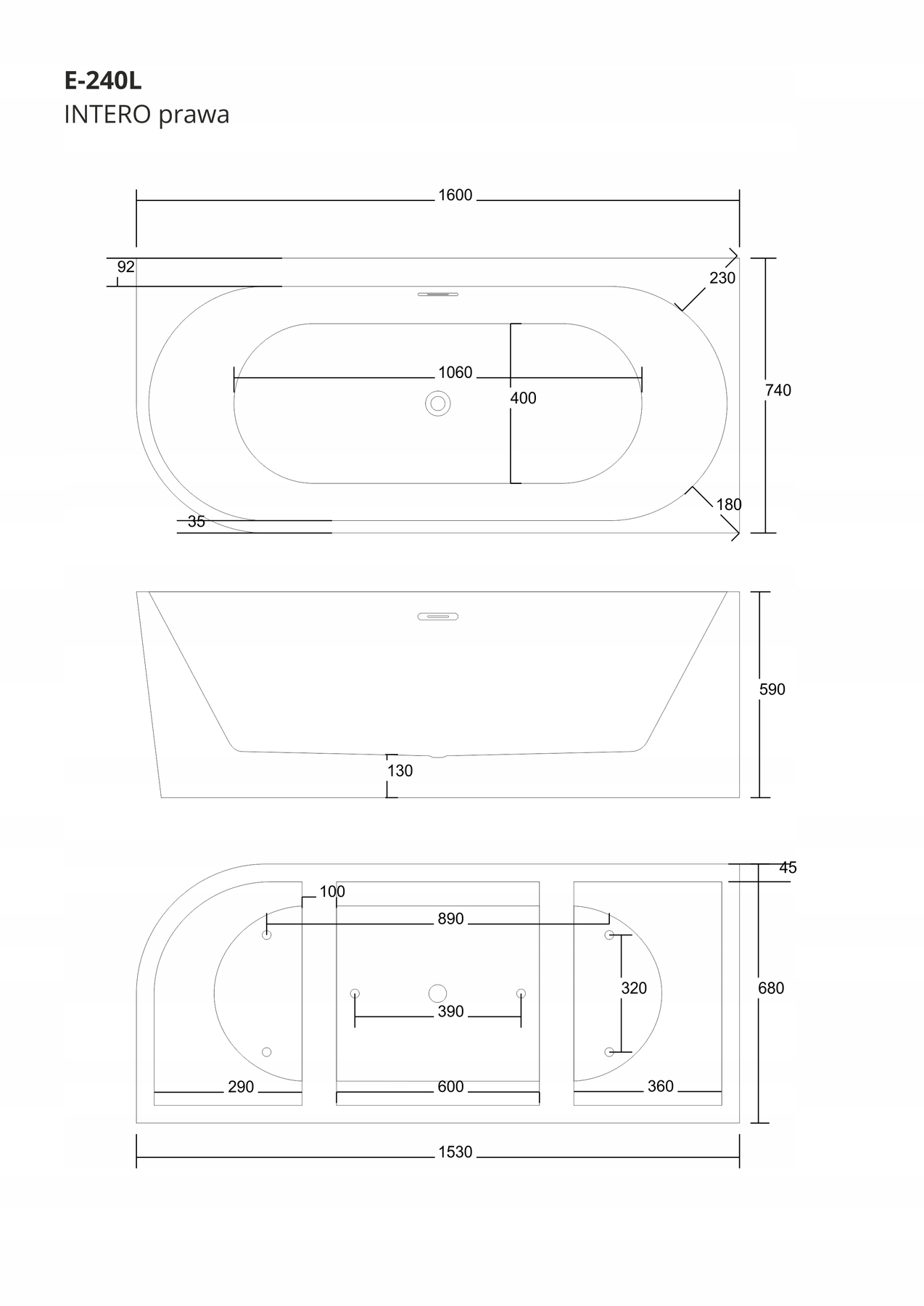 Intero — кутова настінна ванна мінімалістичної форми та ідеальної, симетричної пропорції.