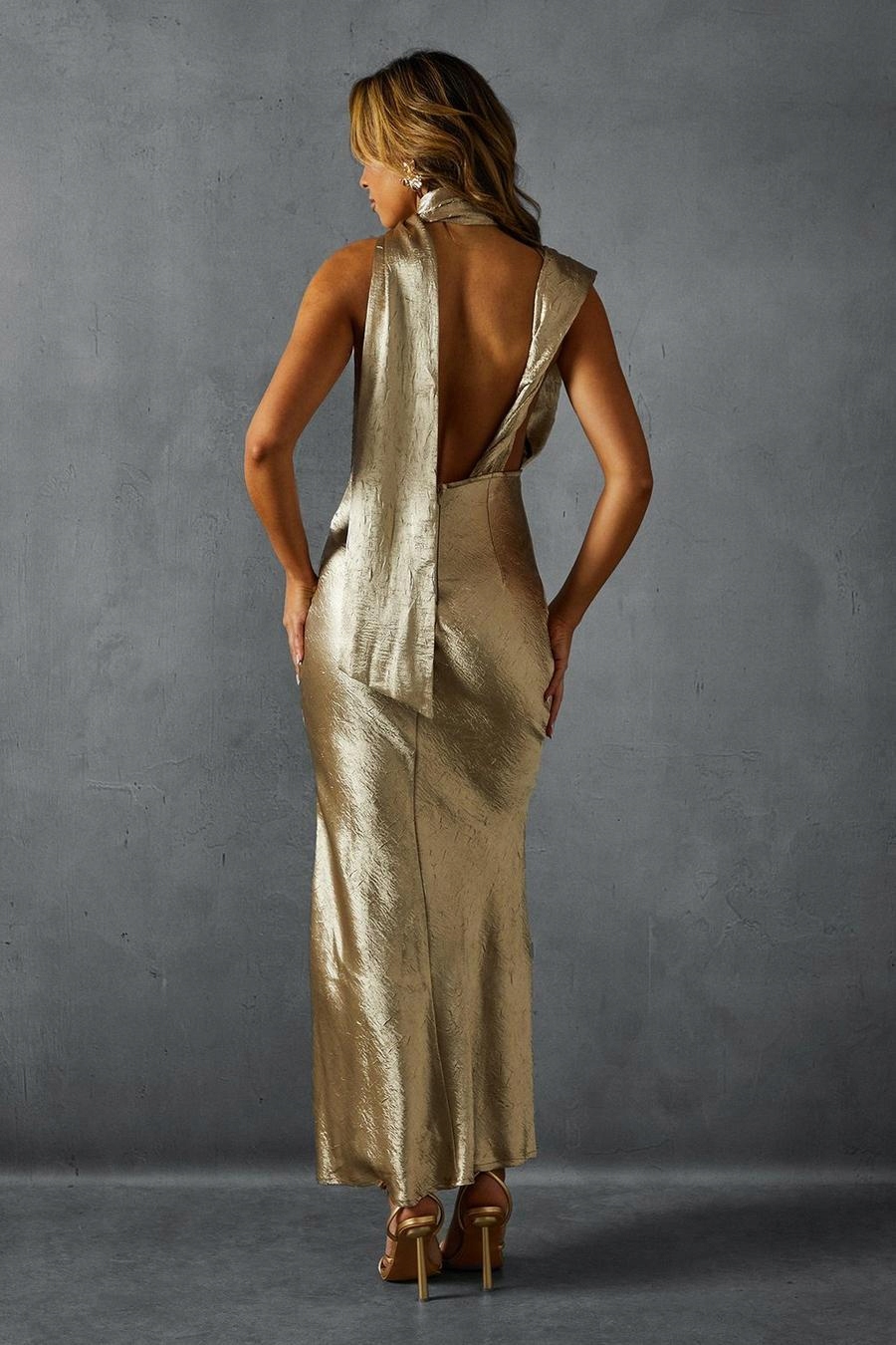 ВЕЧІРНЯ АСИМЕТРИЧНА ВЕЧІРНЯ МАКСІ З ЗОЛОТОЮ ТЕКСТУРОЮ MISSPAP 40