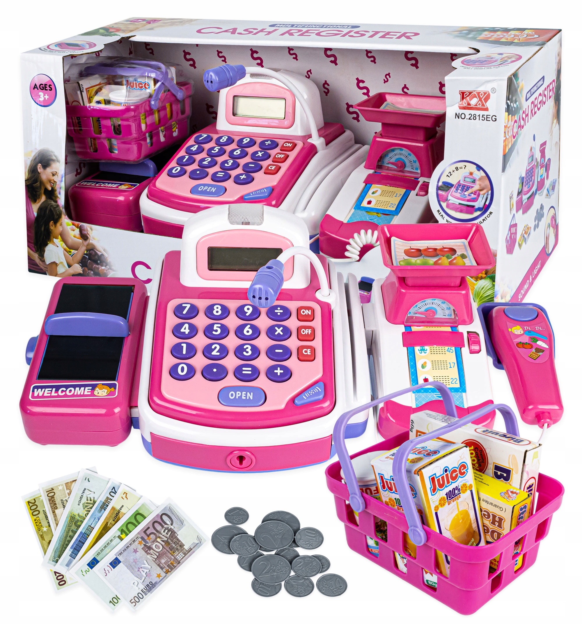 ➡ kasa має дисплей та функцію калькулятора ( додавання, віднімання, множення та поділ ). Кнопки виготовлені з м'яких і приємних до сенсорної гуми. У касі є висувний ящик для грошей - відкриття однією кнопкою та сканером, вагою та мікрофоном. ➡ є сканер. Малек може відчувати себе справжнім продавцем та скануванням. б>. Просто покладіть карту, введіть PIN -код, і вона готова!