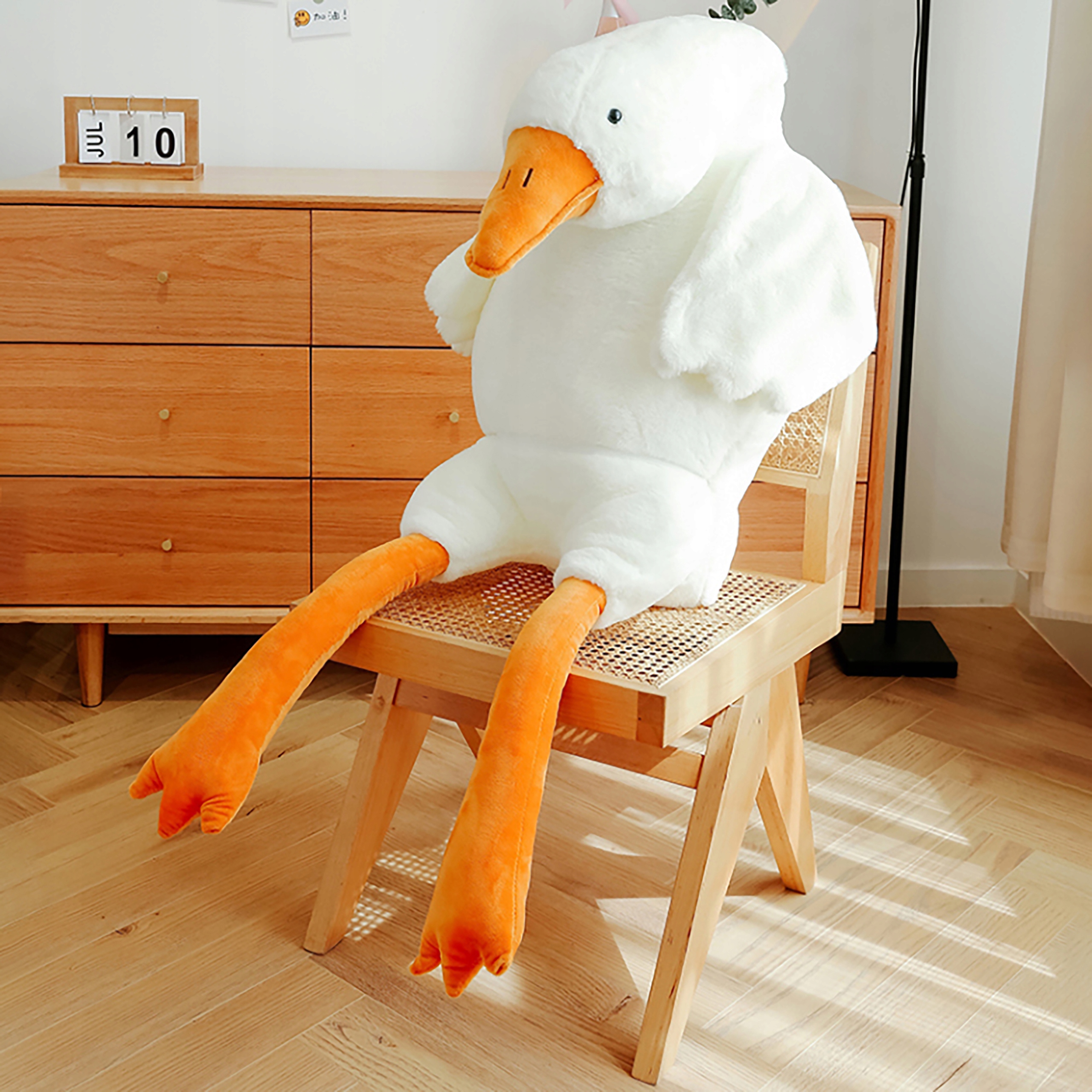 ✨ Декоративний елемент: Великий довгастий плюшевий гусак може бути елемент декору в кімнаті. Його можна поставити на полицю, на ліжко або де завгодно, додаючи інтер'єру шарму та затишної атмосфери.