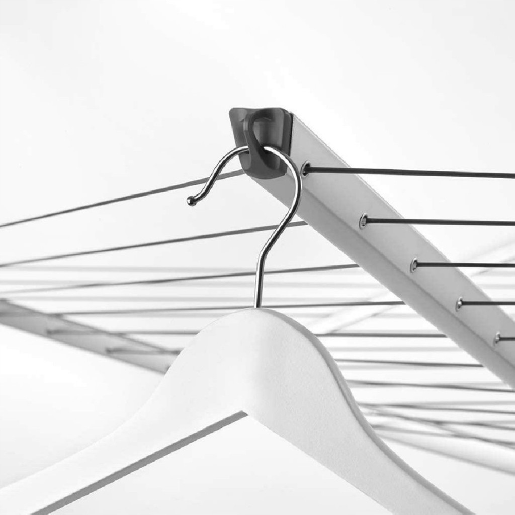 Це як повісити білизну довжину половини футбольного кроку! На 50 метрів ліній ви можете легко встановити до 4 повних навантажень від великої пральної машини. Постільна білизна, рушники, одяг для всієї родини - тепер ви можете висушити все за один раз, заощаджуючи час та енергію. Додаткові гачки на плечах - ідеальне місце для сорочок, які будуть висохнути без зморшок.