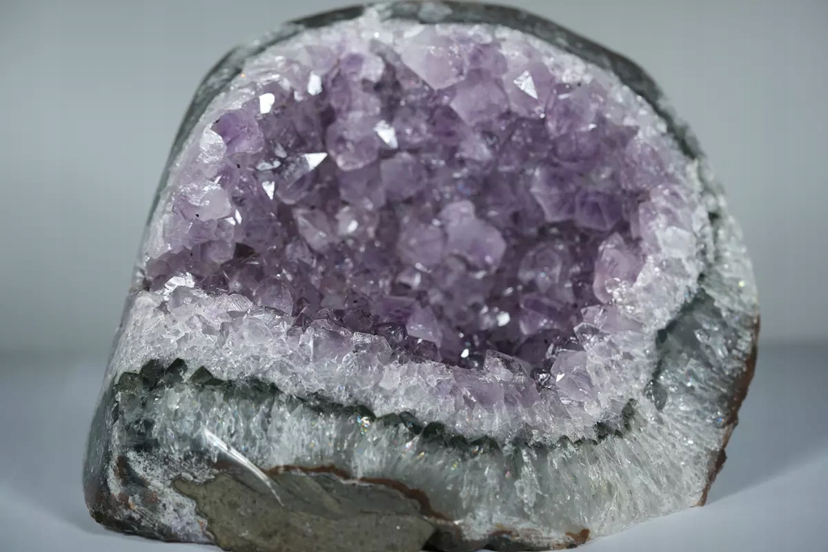 Тема пропозиції - це повністю природний зразок фіолетового аметисту у вигляді кристалічного геода з підрізаною основою. Камінь стоїть стабільний без необхідності додаткової позиції. Аметист - прекрасний і ефективний мінерал, а запропонована копія чудова як природна прикраса.