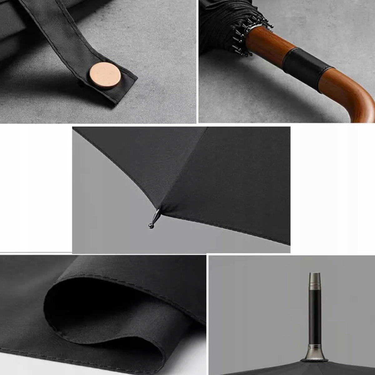 Богородична парасолька Ø125 см * довжина 98 см з високоякісною ручкою з дерева та шкіряної (вигнутою), водонепроникною тканиною, великою парасолькою XXL з 16 реберами