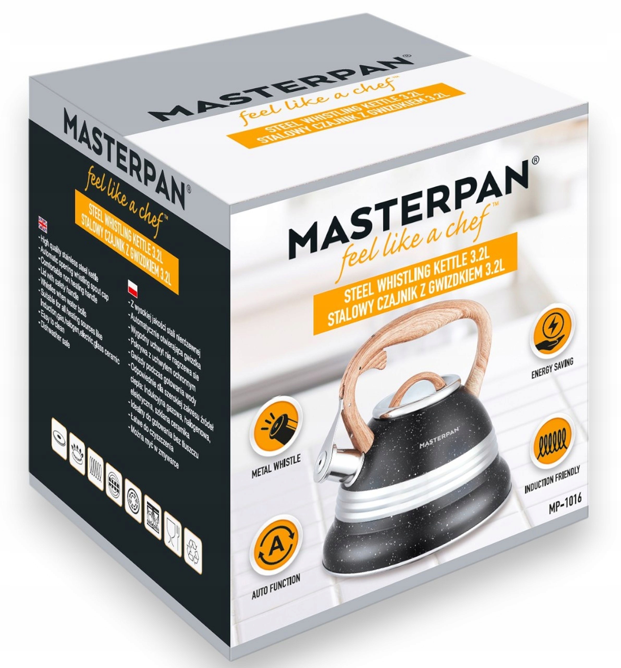 3-літровий чайник з чорної сталі з мармуровою обробкою та ручкою, що імітує деревину