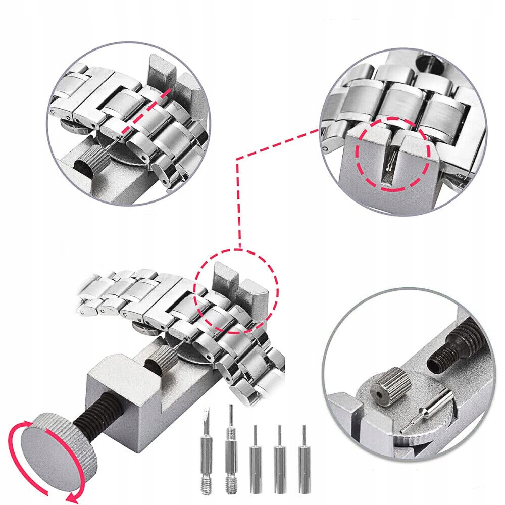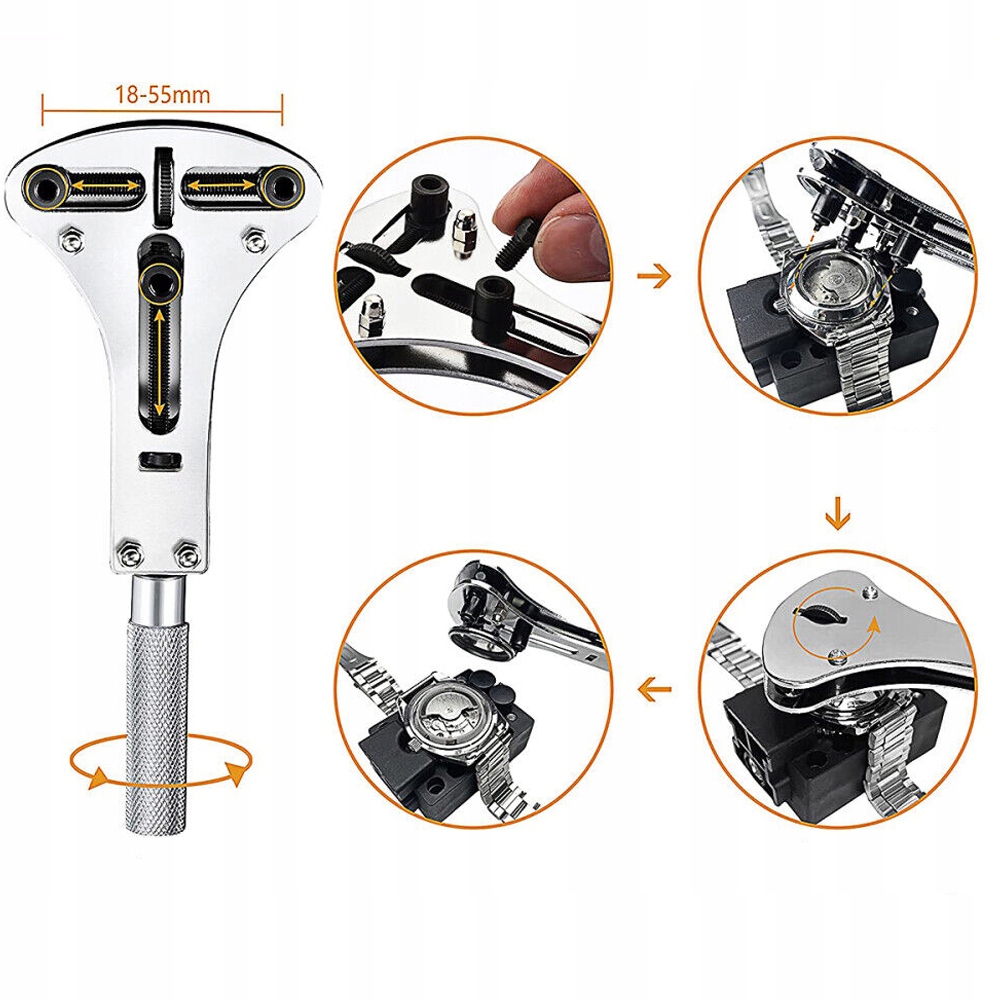 Особливості 【Широке використання】 Цей професійний набір годинників чудово підходить для ремонту та регулювання годинника, включаючи демонтаж ременя, відкриття задньої кришки годинника, заміну акумулятора годинника, коригування ремінців, очищення інтер'єру годинника та технічного обслуговування інтер'єру годинника тощо. Вони можуть виконувати різні функції, наприклад демонтаж та складання елементів при ремонті різних годинників. Ви отримаєте, серед іншого, спеціально розроблений набір пресів для годинників, завдяки якому ви закриєте задню обкладинку годинника протягом 15 хвилин.