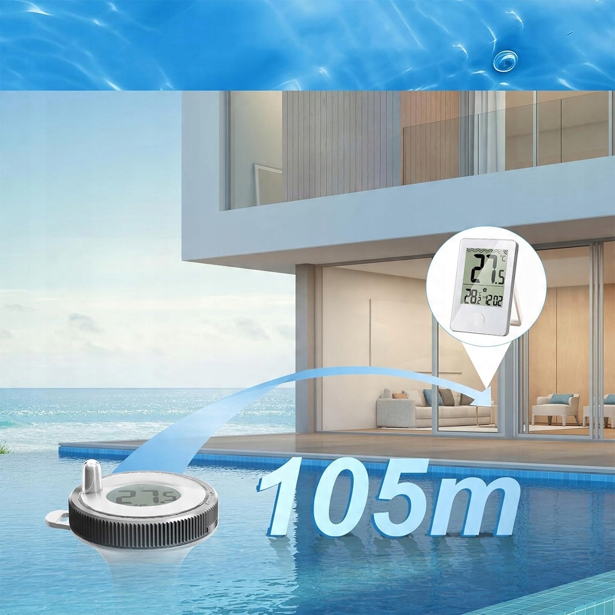 Великий плаваючий басейн термометр + приймач для басейну для ванни Jacuzzi