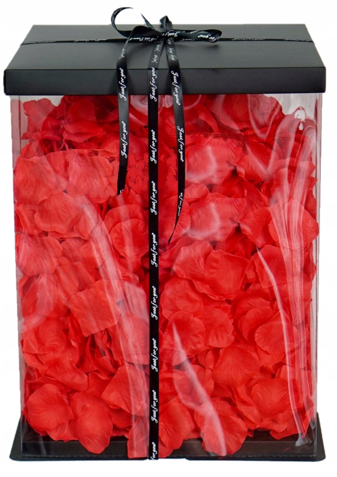 Ви можете покрити, наприклад, пелюстки троянд перед закриттям кришки. Уявіть собі обличчя коханої людини під час заручини чи романтичної річниці , коли він піднімає прозору обкладинку, квіткові пластівці розсипаються навколо, і серед них виходить солодкий ведмедик із сотень троянд . Сцена, гідна найкращих романтичних фільмів.