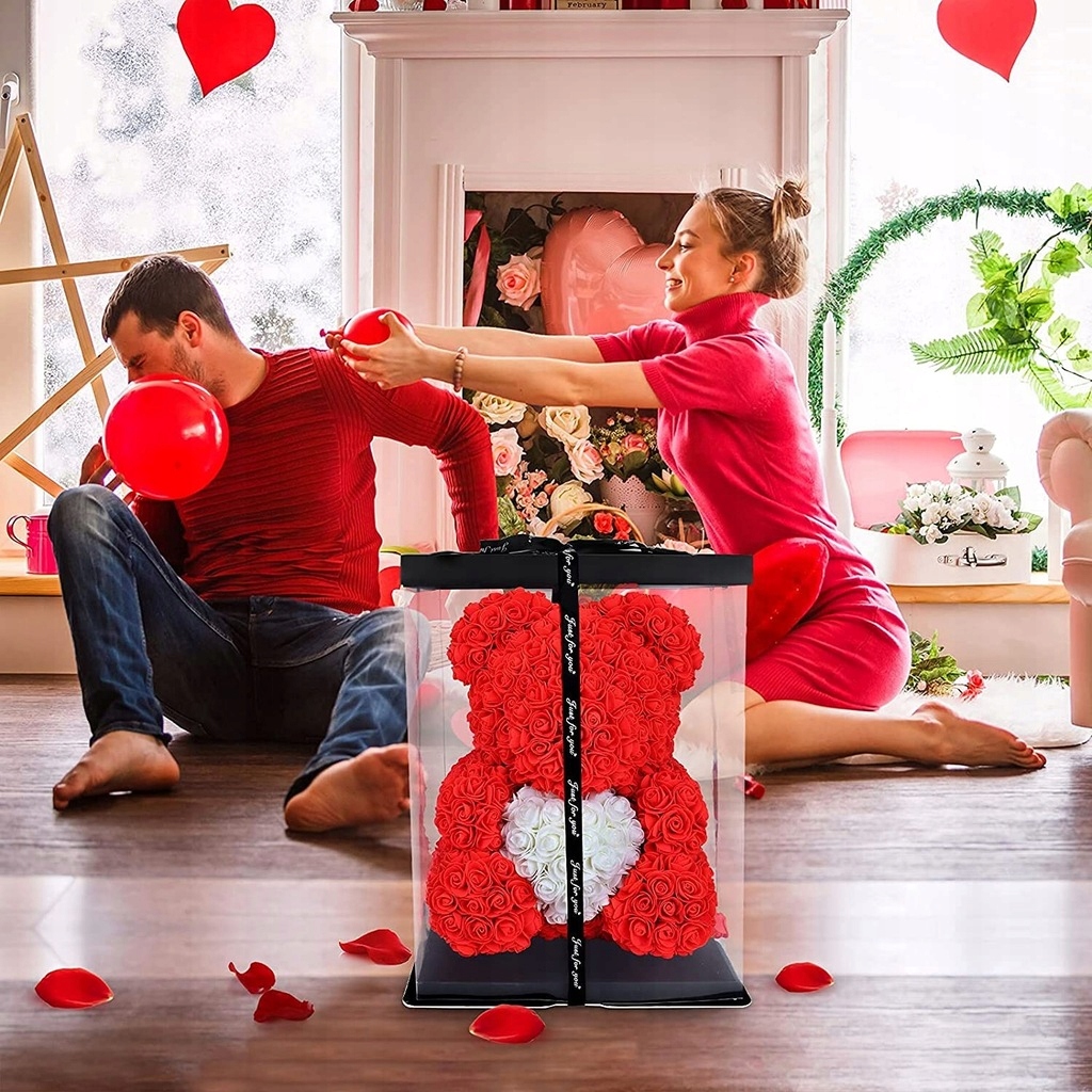 Наш плюшевий ведмедик пелюстків троянд , який також називається "трояндова плюшева" , є параметром подарунка в ексклюзивній версії і хіт це Підкрадає серця користувачів Інтернету у всьому світі. Дивовижний вигляд , у прозорому пакеті, ви можете додатково покрити його трояндами. Визначений ефект, у романтичних пейзажах, це буде чудовим сувенірам для фотографій та відео у важливих випадках.