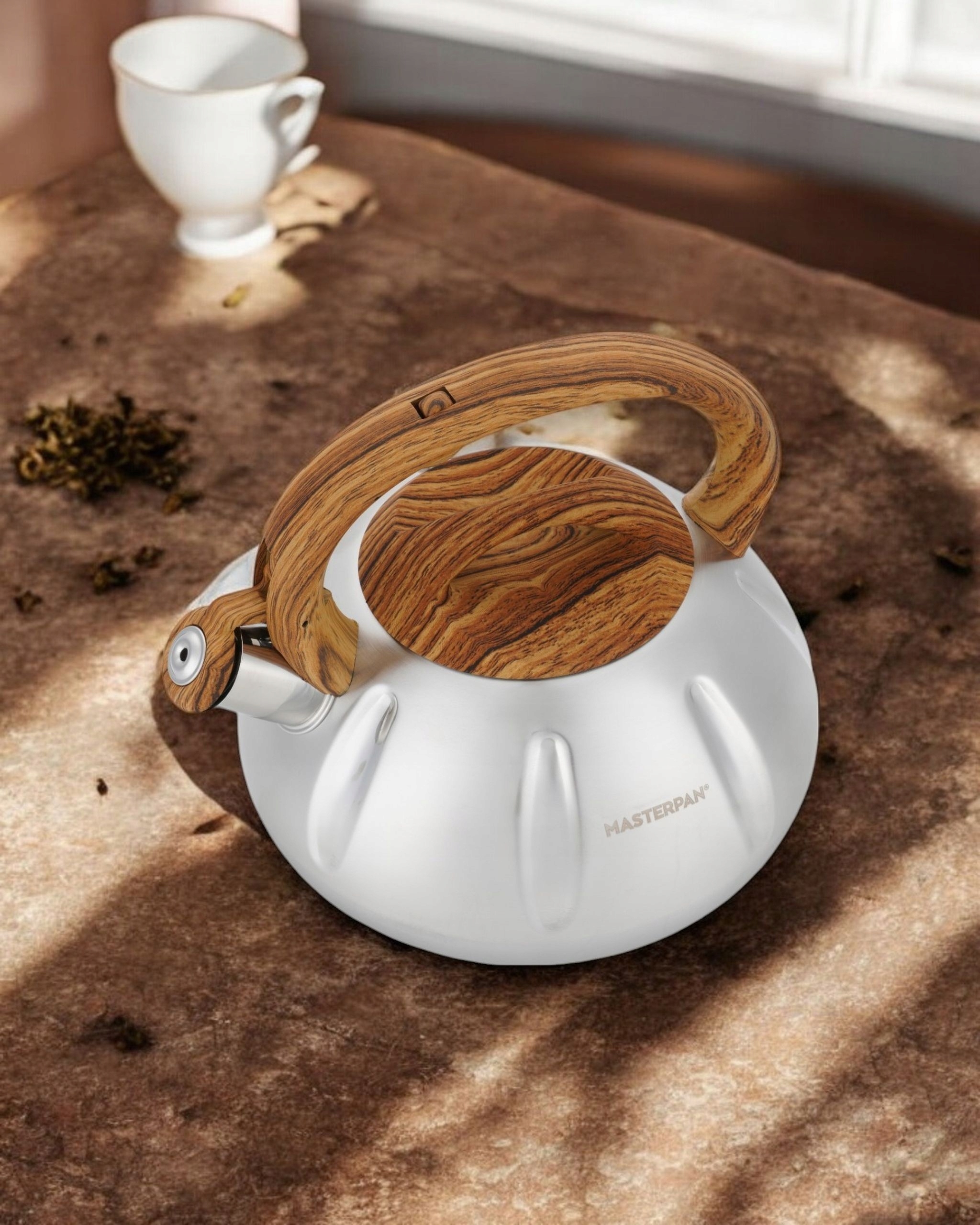 Сталевий 3-літровий чайник з матовою обробкою та ручкою імітує деревину