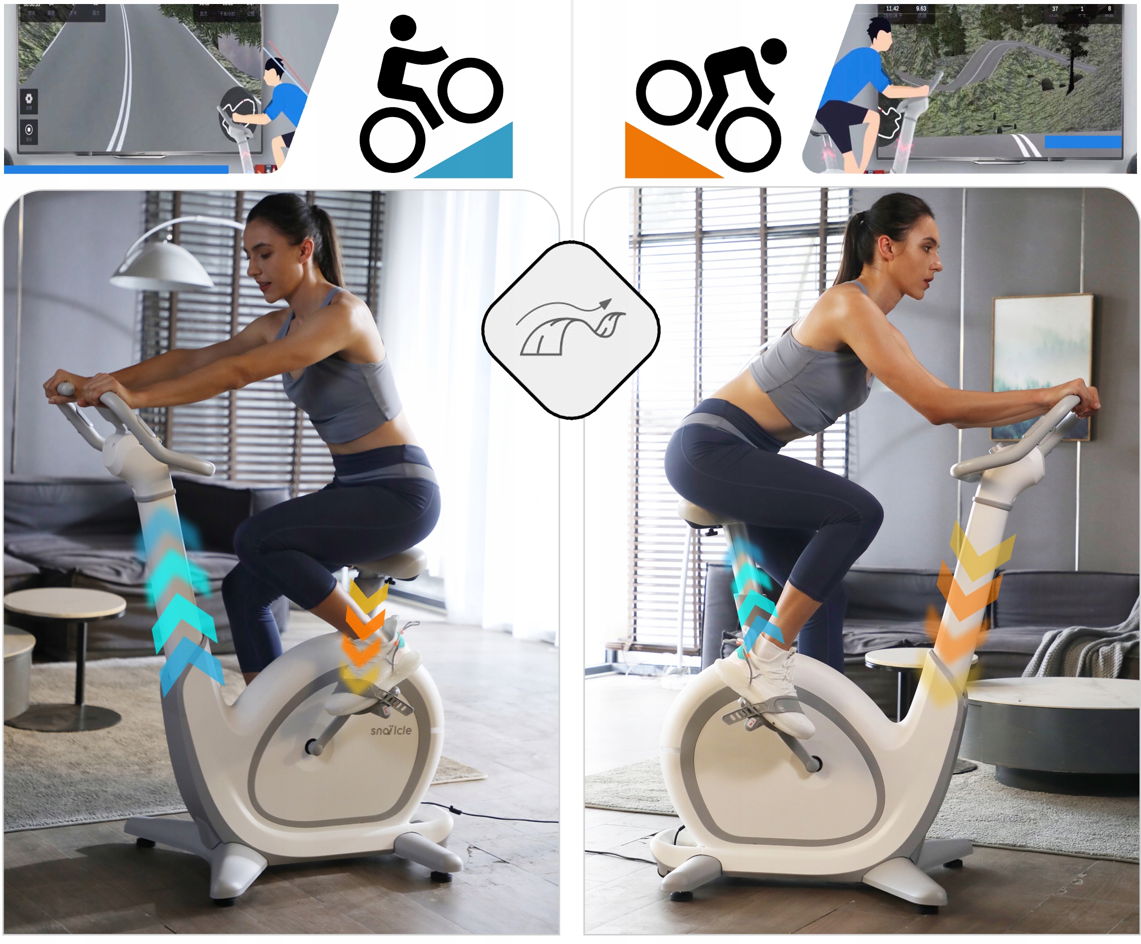 За допомогою запатентованого датчика гравітації та обчислень, зроблених штучним інтелектом, Snailcle Bike визначить вашу поставу тіла та налаштує найбільш відповідне значення опору у певний момент