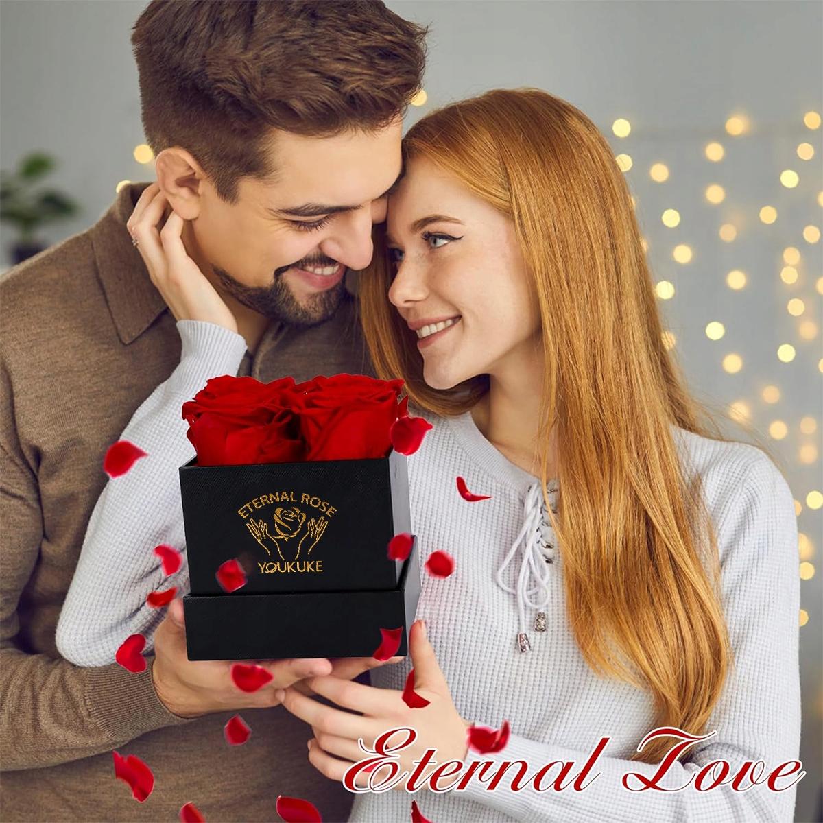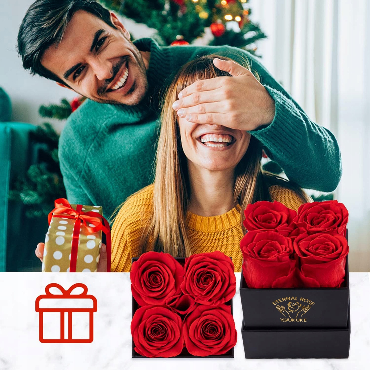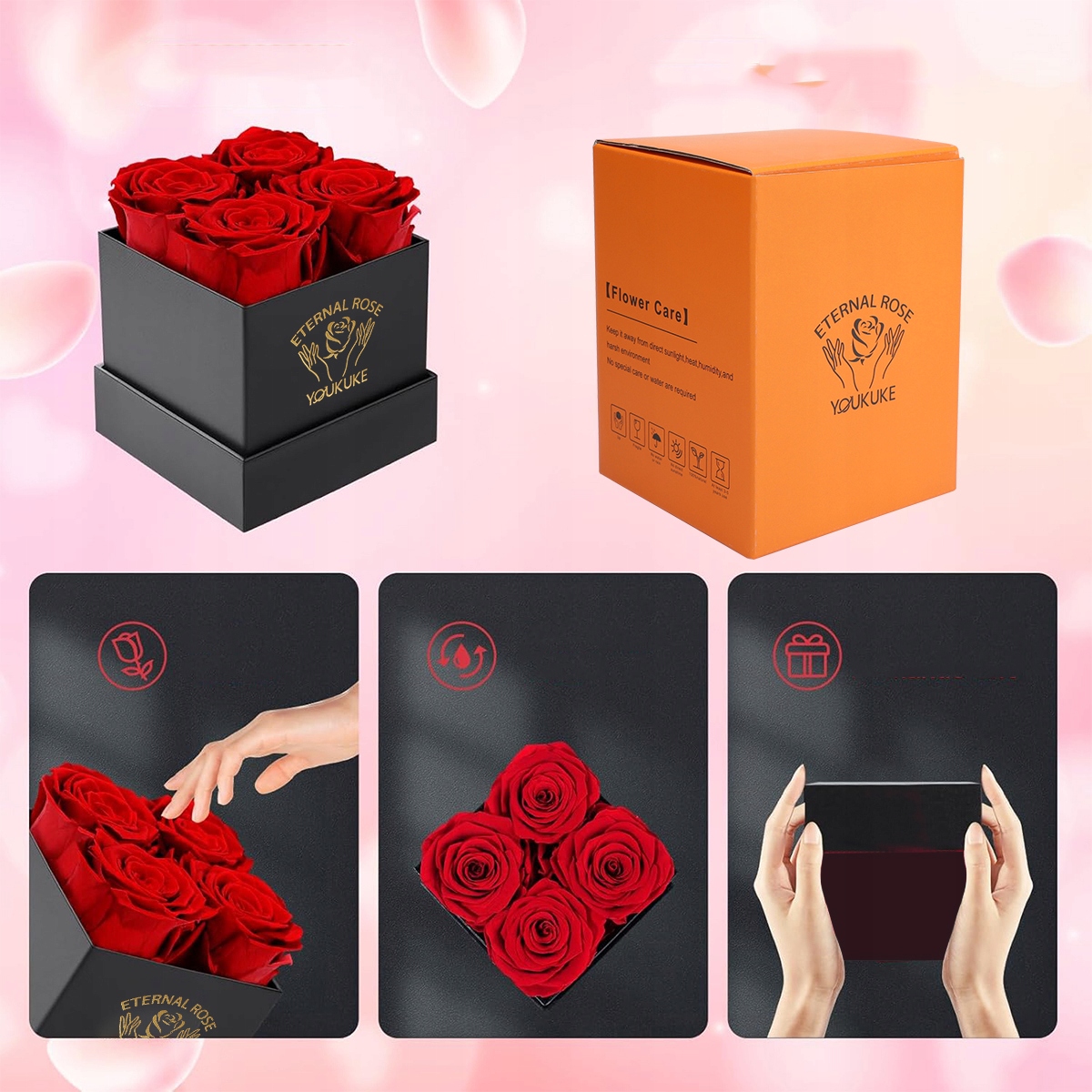 Збережена троянда - символ вічної любові, 4 справжні червоні троянди в класичній чорній подарунковій коробці. 100% ручної роботи реальні, свіжі квіти, оброблені унікальним методом обслуговування. Вічна квітка виражає вічну любов до коханої людини.