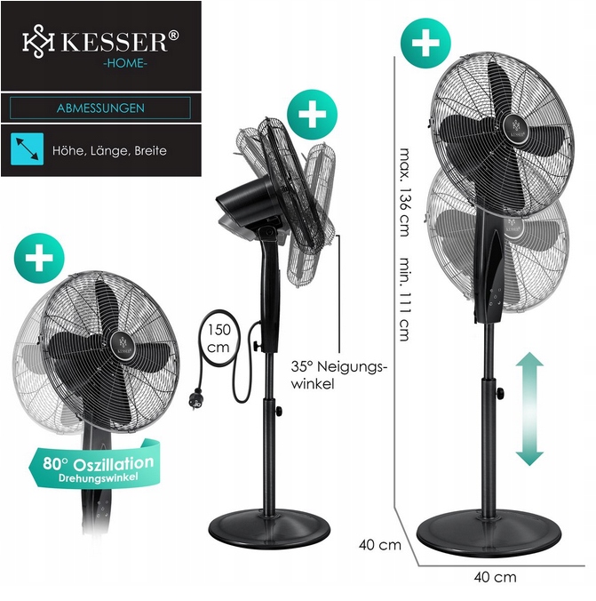 - 1x стоячий вентилятор Kesser®