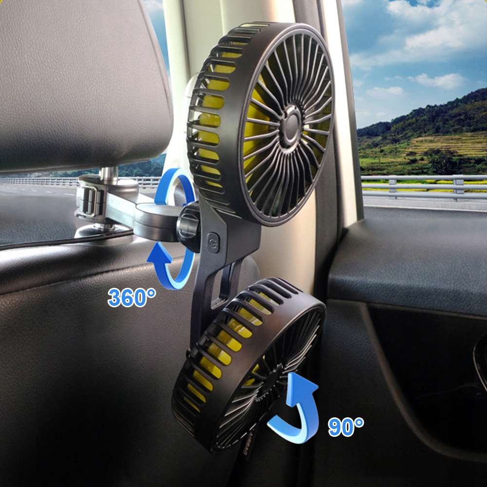 Вентилятор автомобіля для заднього сидіння, вентилятори для заднього сидіння, регульовані вентилятори охолодження USB з подвійною головкою, портативними вентиляторами автомобіля з 3 швидкостями, циркуляція повітря в автокріслі