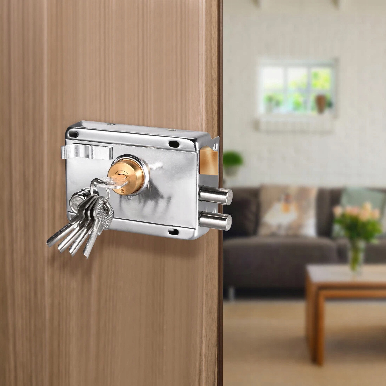 *Набір замок для зовнішніх дверей у сріблі, у формі півмісяця, праворуч, ключ відкрився, з засувкою та болтом. Набір включає золотий латунний циліндр, 5 срібних металевих клавіш та кілька кріпильних аксесуарів.