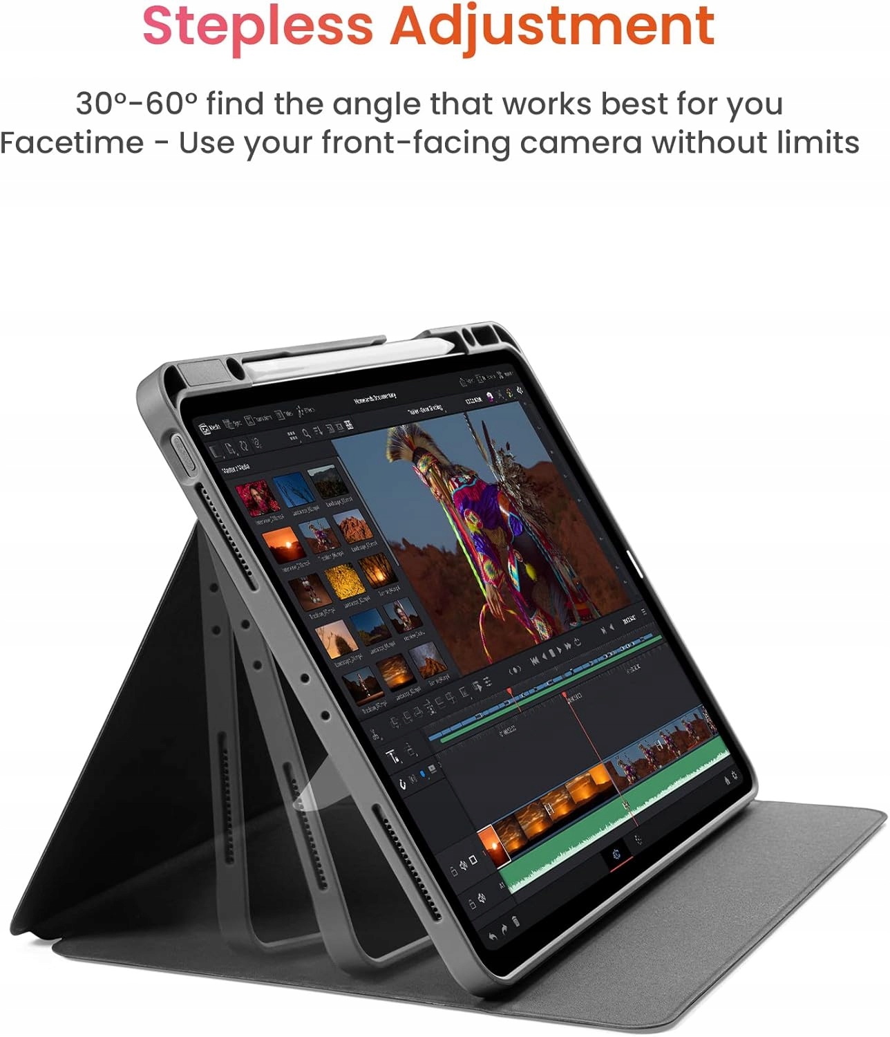 Портретний режим з кутом налаштування 69 ° робить випадок унікальним порівняно з більшістю корпусу iPad. Це найкращий, зручний кут для того, щоб змусити хлопця дзвінки, переглядати веб -сайти або читати документи. Просто розслабтесь і насолоджуйтесь цим.