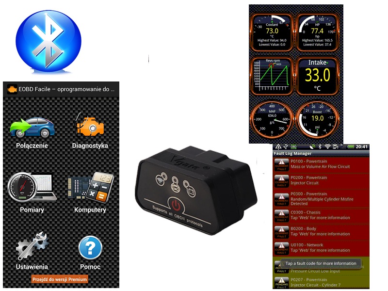 VGATE ICAR2 OBD2 ДІАГНОСТИЧНИЙ ІНТЕРФЕЙС ELM327 BLUETOOTH TESTER POLISH PL + OBD2 КАБЕЛІ РОЗДОВЖЕННЯ АДАПТЕР РОЗДОВЖЕННЯ Перемикач