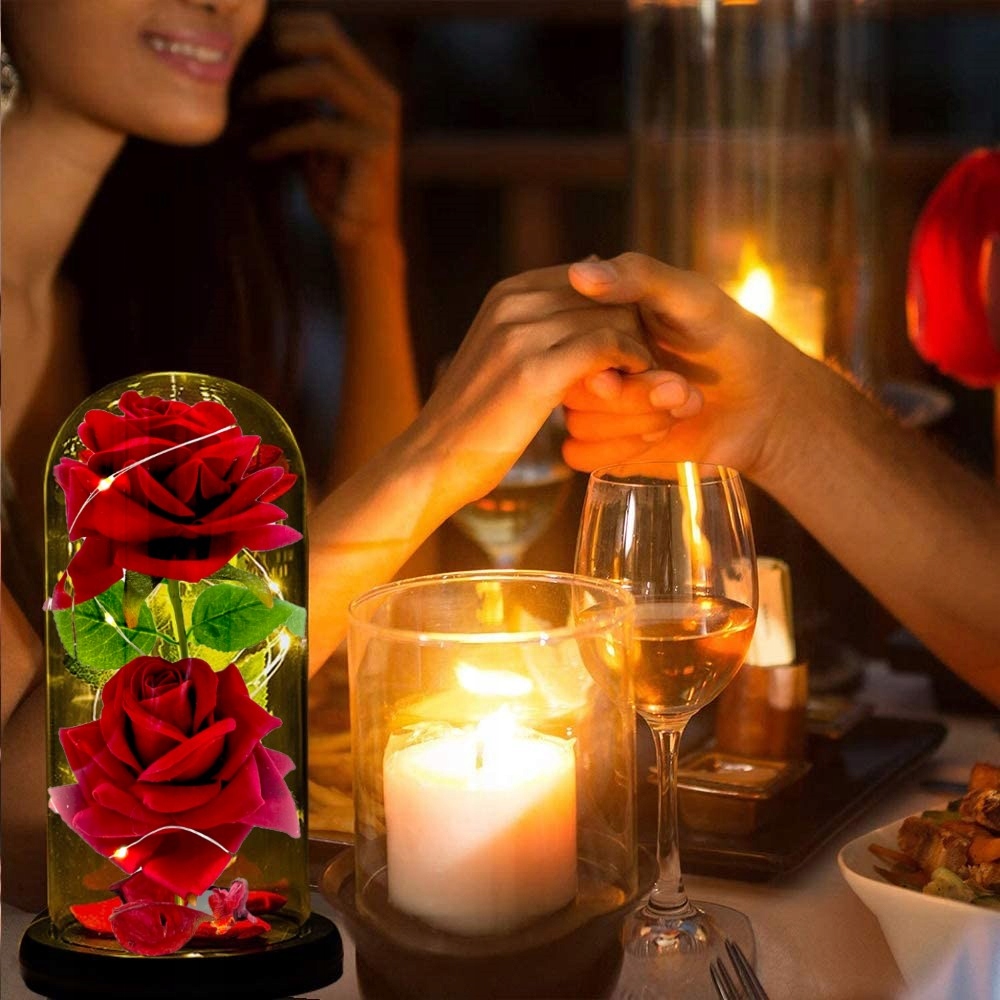 Подарунок Валентина Вічна троянда в подарунок на скляну нічну лампу для Дня Валентина для неї у нас є жіноча квіткова коробка