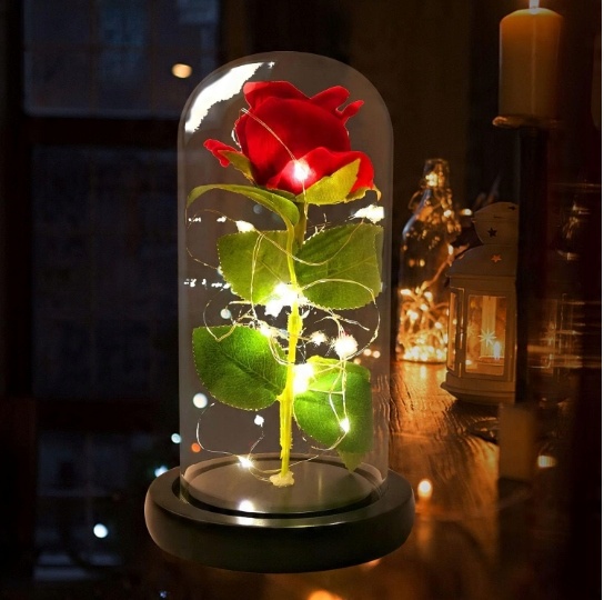 ВІЧНА ТРОЯНДА В СКЛІ, СВІТЛЮЧЕННЯ LED НА ПОДАРУНОК, ДЕНЬ СВЯТОГО ВАЛЕНТИНА, РІЧНИЦЯ НАРОДЖЕННЯ