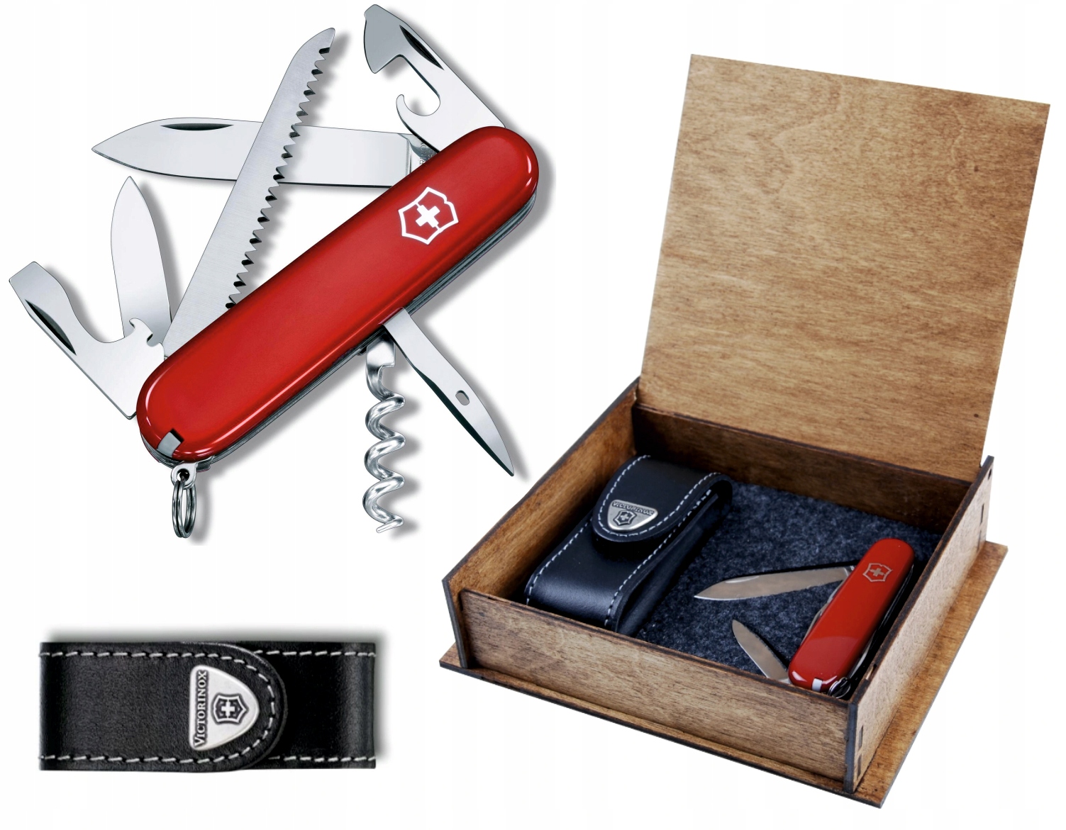 Ви отримуєте кишеньковий ніж у декоративній дерев’яній коробці, а також оригінальний шкіряний чохол VICTORINOX з можливістю кріплення чохла до пояса. Ідеальна ідея подарунка для чоловіка.