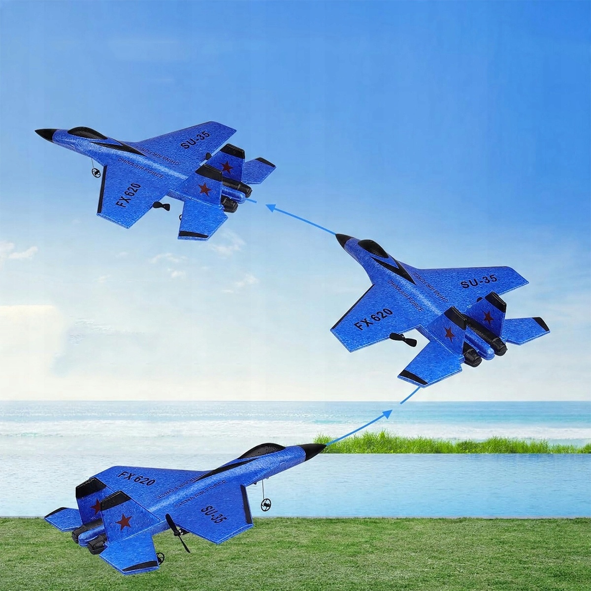 RC 2CH літаків дистанційно керованих SU35 винищувачів 2,4 ГГц RC RTF для початківців, дітей та дорослих, іграшки FX620 з барвистими вогнями, що заряджають USB (синій)