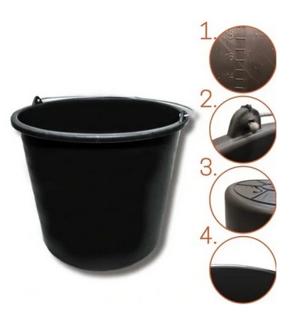 Відро добротне будівельно-побутове польського виробництва. Виготовлена з гнучкого, стійкого до пошкоджень пластику.