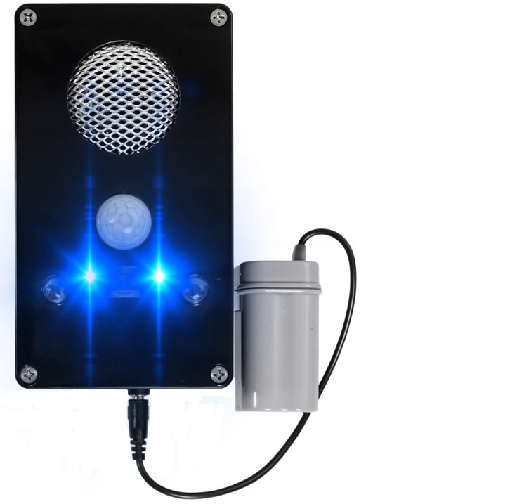 Датчик руху розміщений у спеціальному куполі, що забезпечує широкий кут огляду. Зона патрулювання має радіус 3-6 м. Датчик працює як вдень, так і вночі. Як тільки він виявляє предмет, що випромінює тепло, він включає відлякувач, який активує генератор ультразвуку або сирену тривоги. Все робиться автоматично.