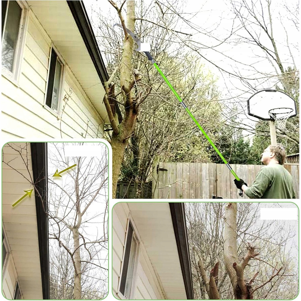 ► Стабільність: Наша відремонтована пилова головка, палиця, що з'єднує головку пилки, кріпиться двома гвинтами, що значно підвищує стабільність та продуктивність та забезпечує хорошу безпеку під час роботи. Обрізати власні дерева та чагарники тепер простіше і безпечніше, ніж будь -коли. В ідеалі підходить для різання гілки та листя в лісовому господарстві, газоні, саду та інших місцях, які потребують різання.